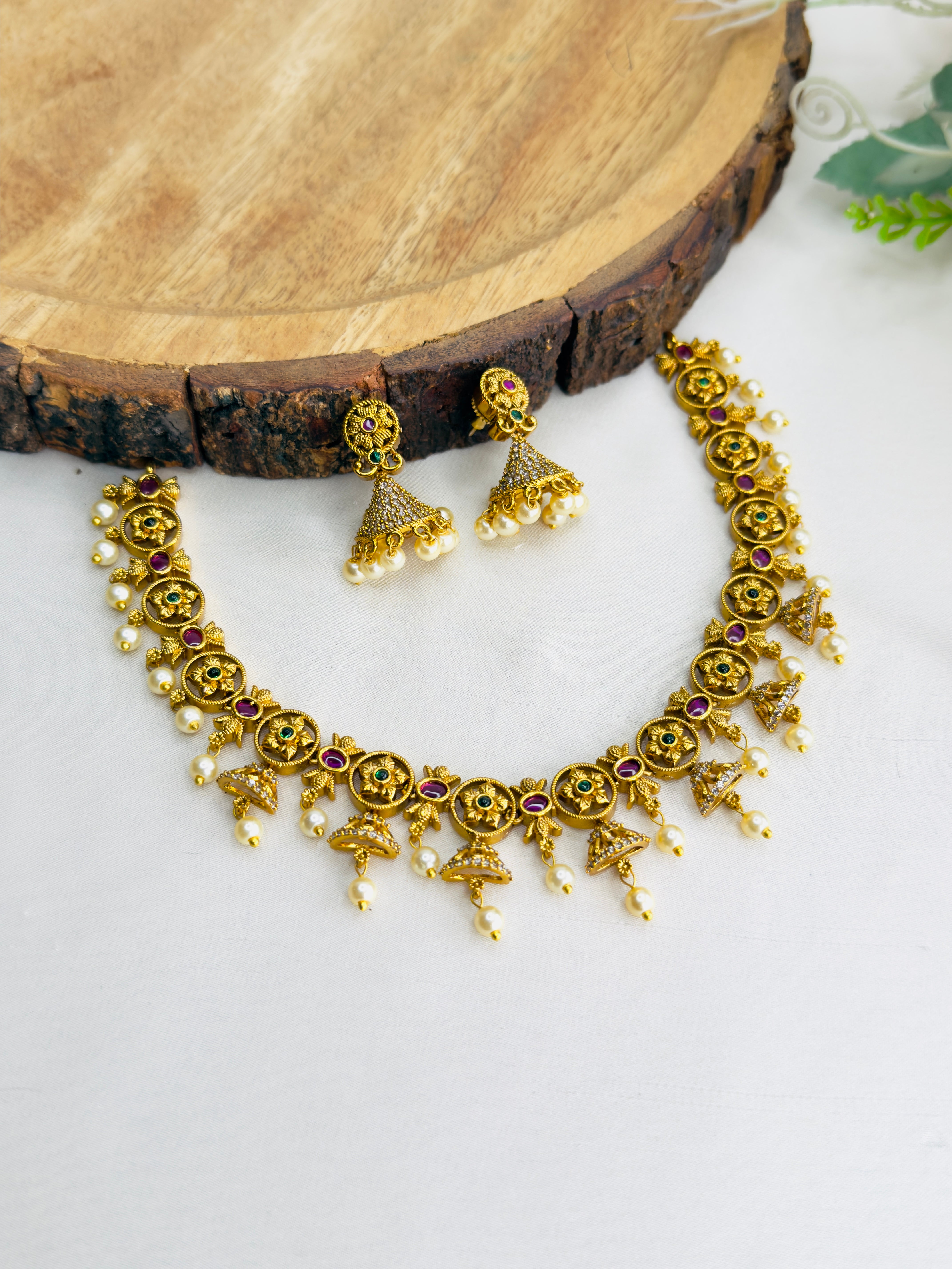 Rs. 3,299 Rs. 3,999Rs. 3,299Rs. 3,299 Rs. 3,999Gold Replica Jadau Temple Necklace set