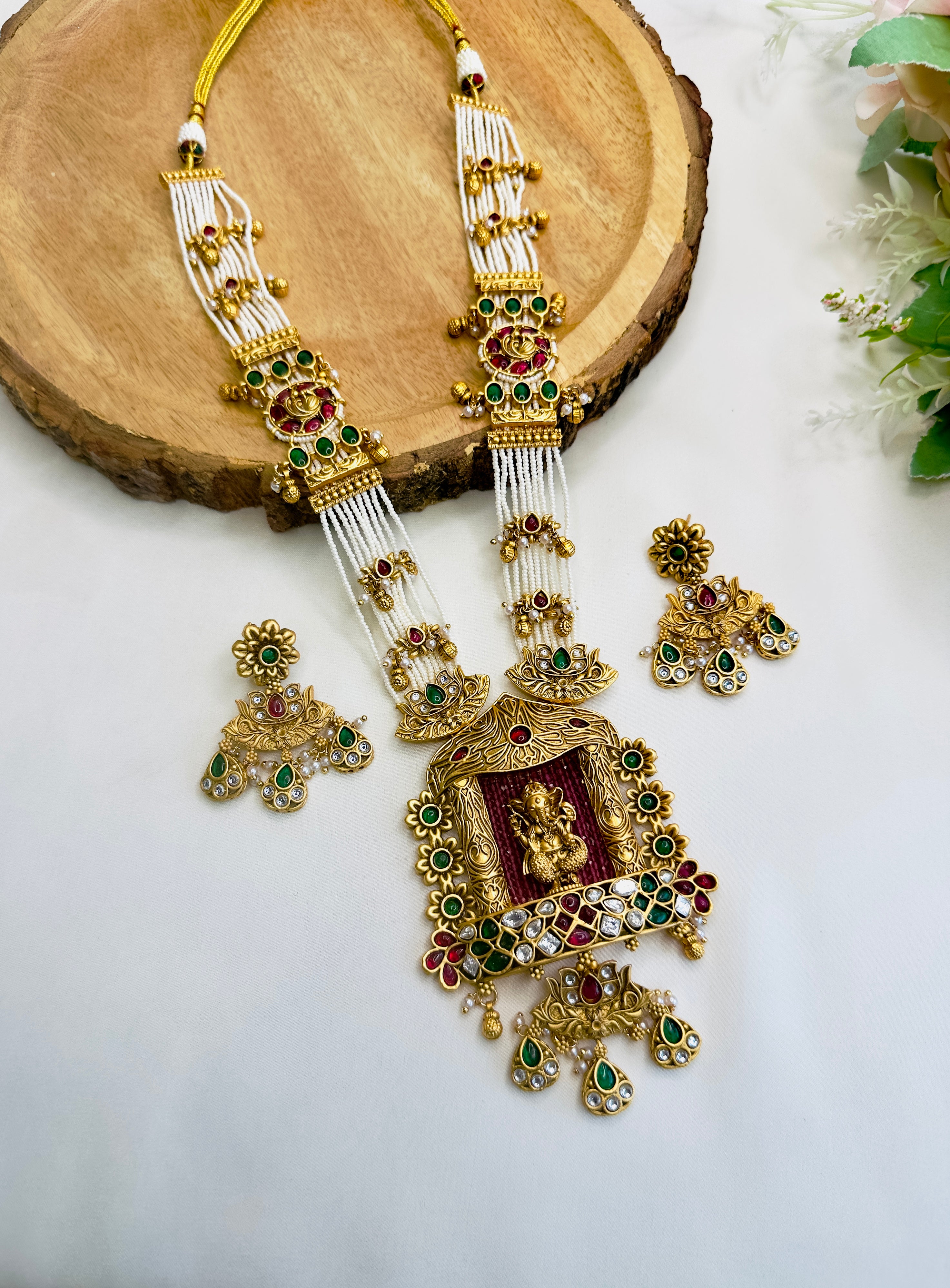 Ganapati Motif Hydro Piyoyee Necklace Set