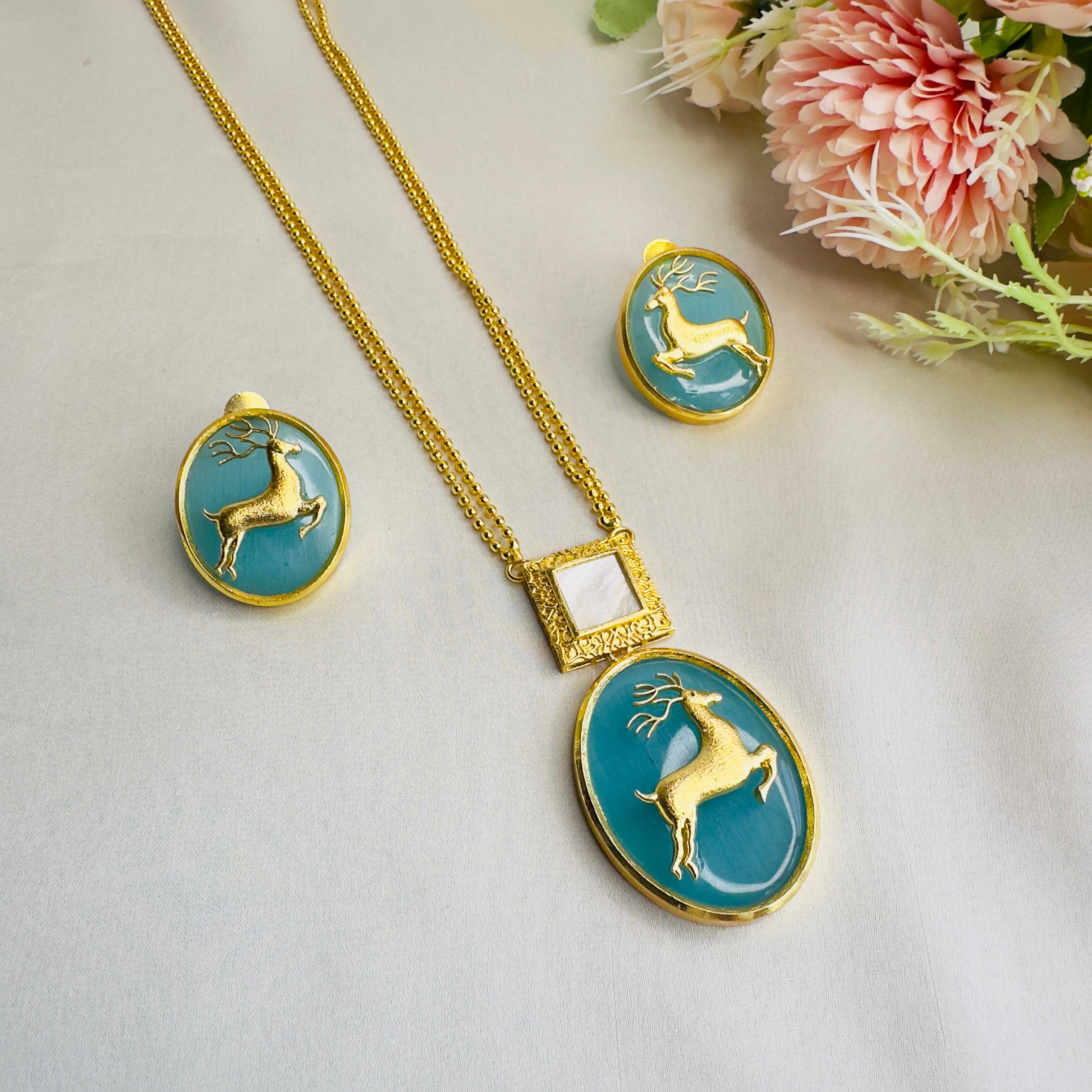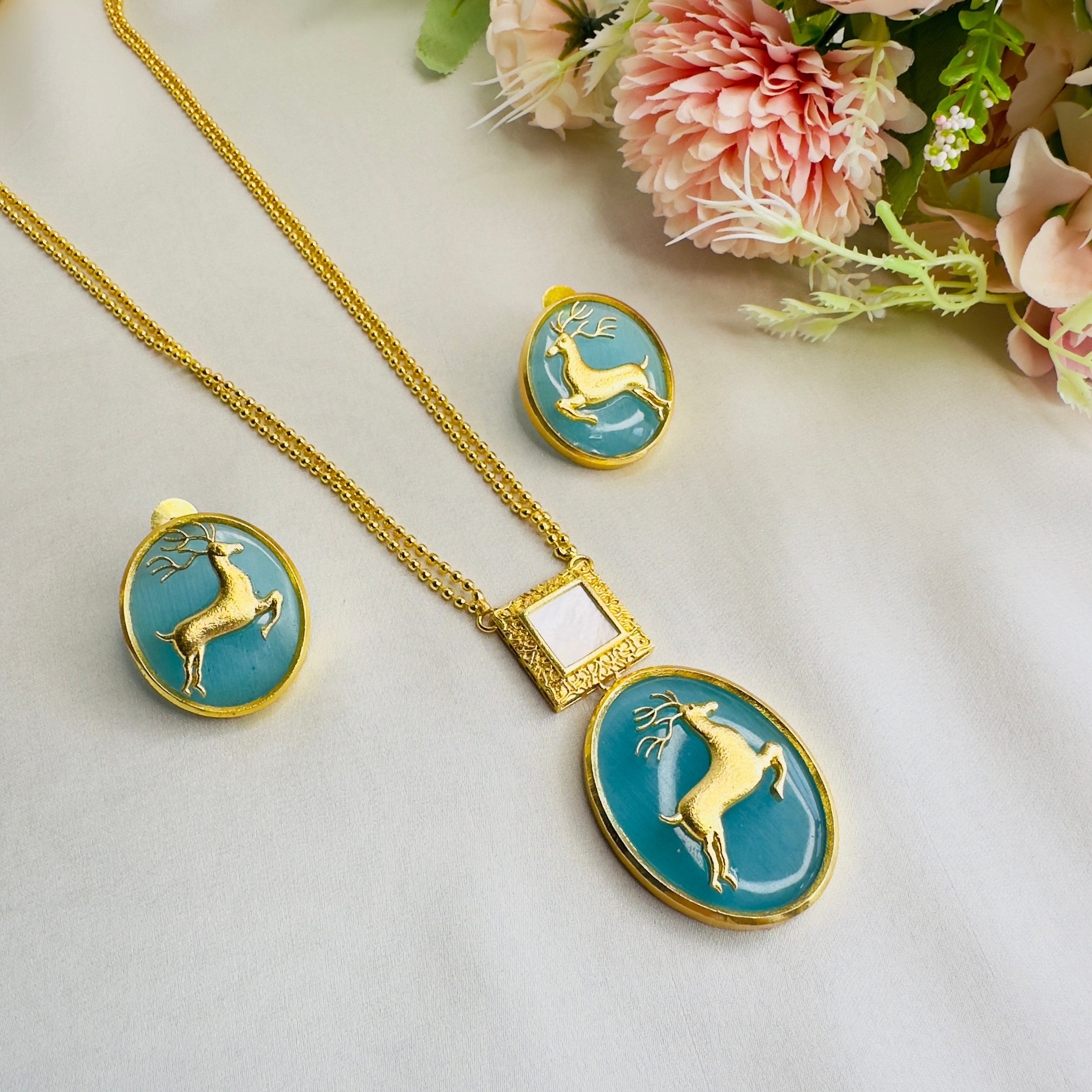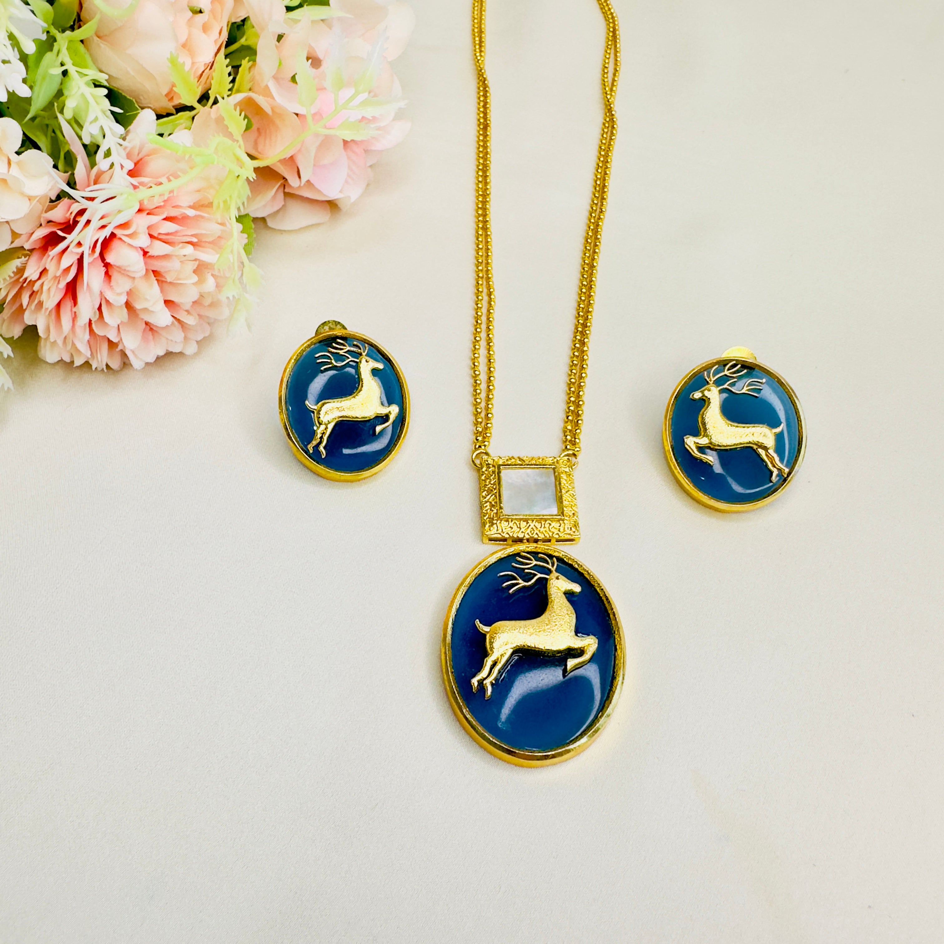 Deer Motif Mother of Pearl Necklace Set