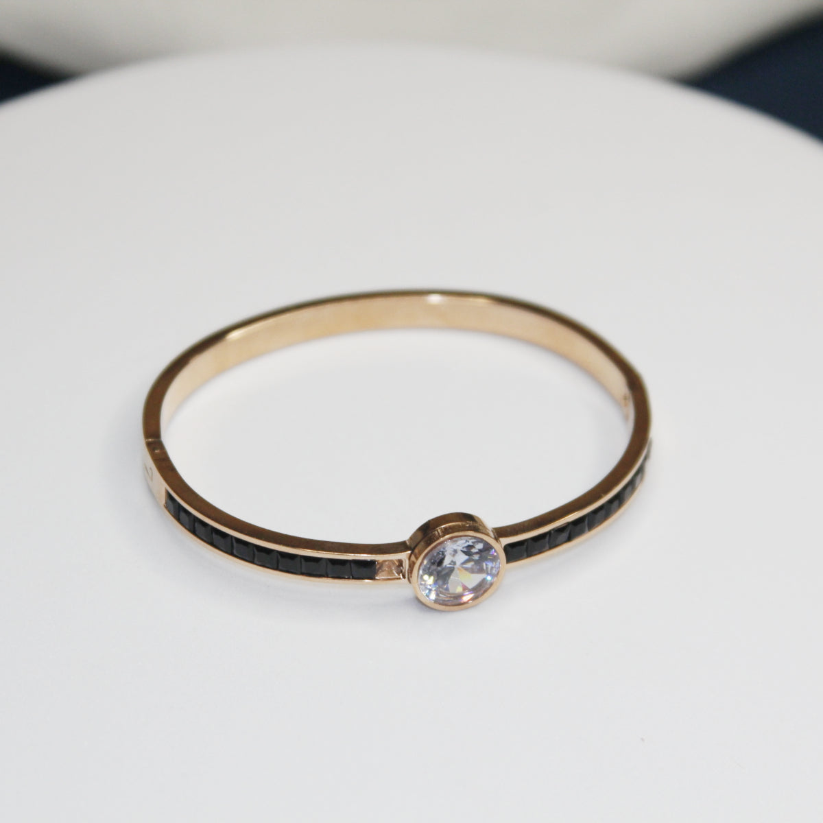 Stainless Steel rose gold plated Black CZ with big stone bracelet