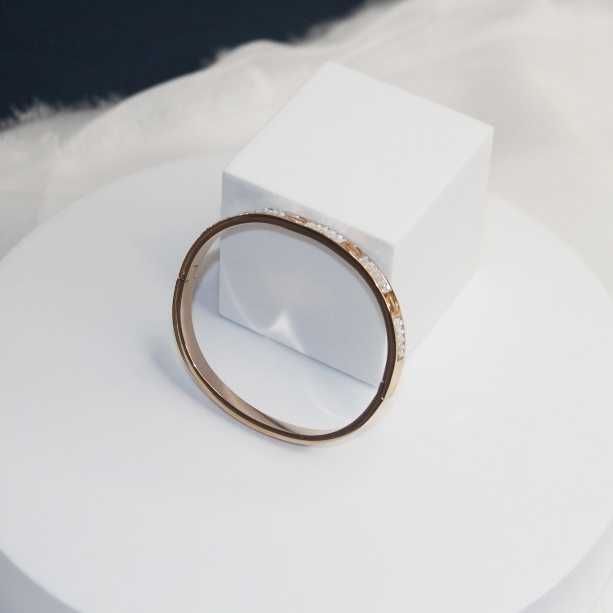 Rose Gold plated stainless steel clear CZ stone bracelet