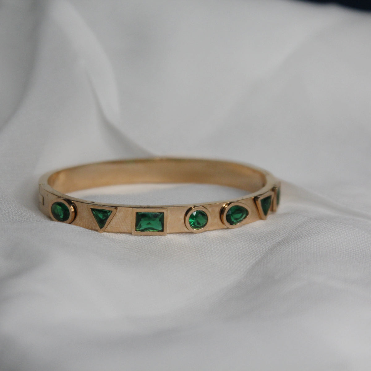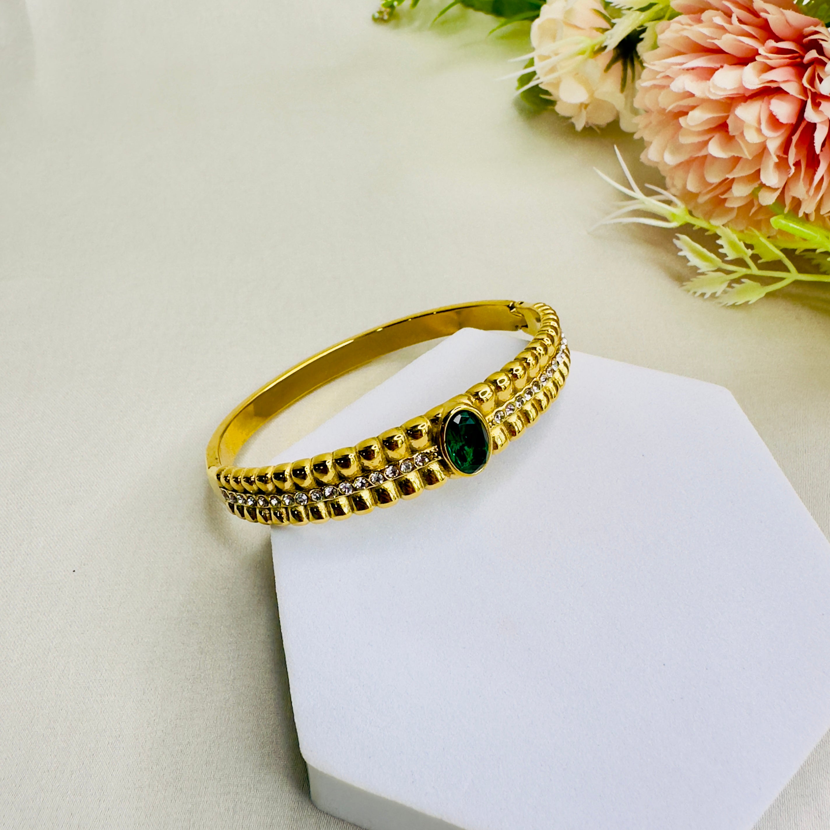 Stainless Steel Rose Gold green Zircon crystal bracelet