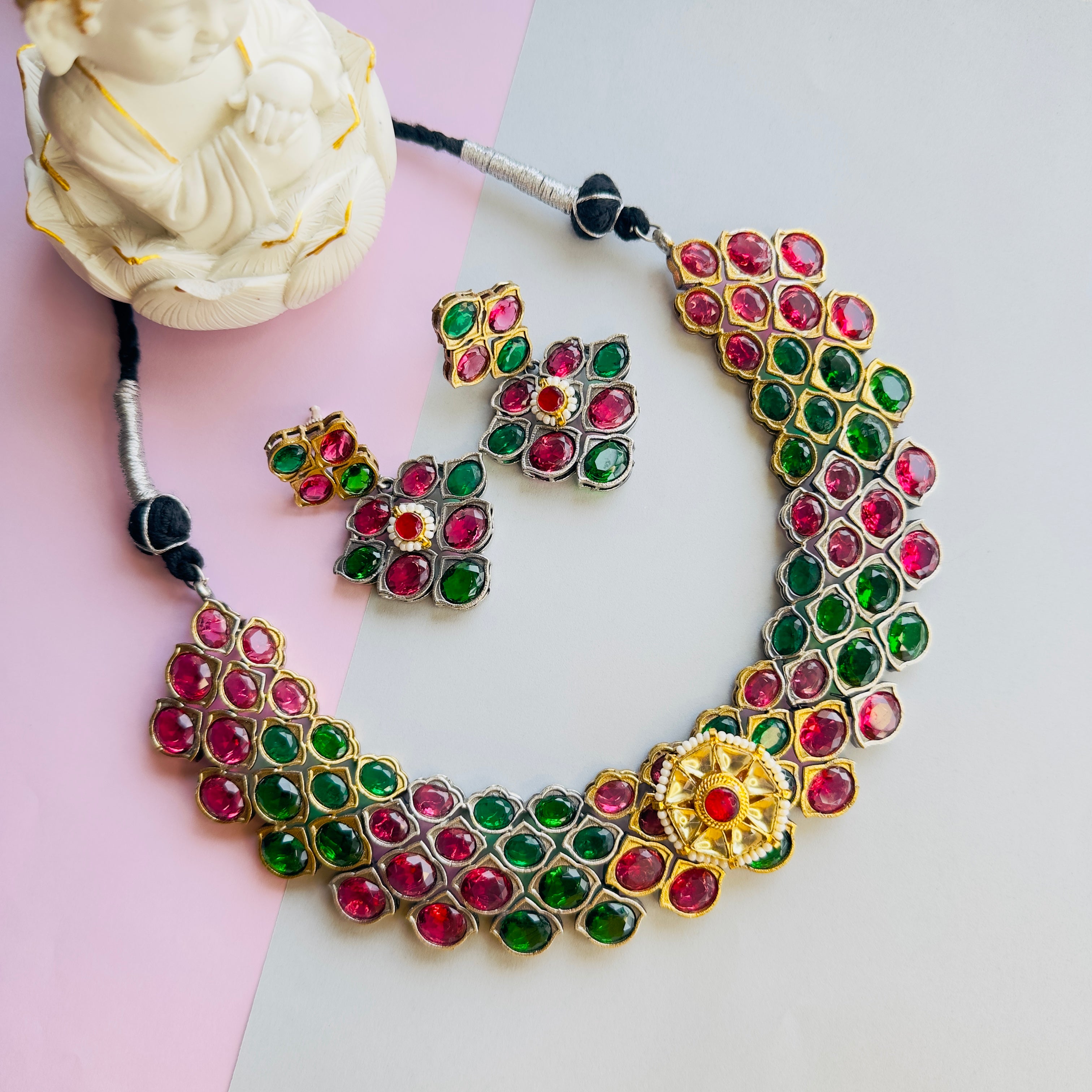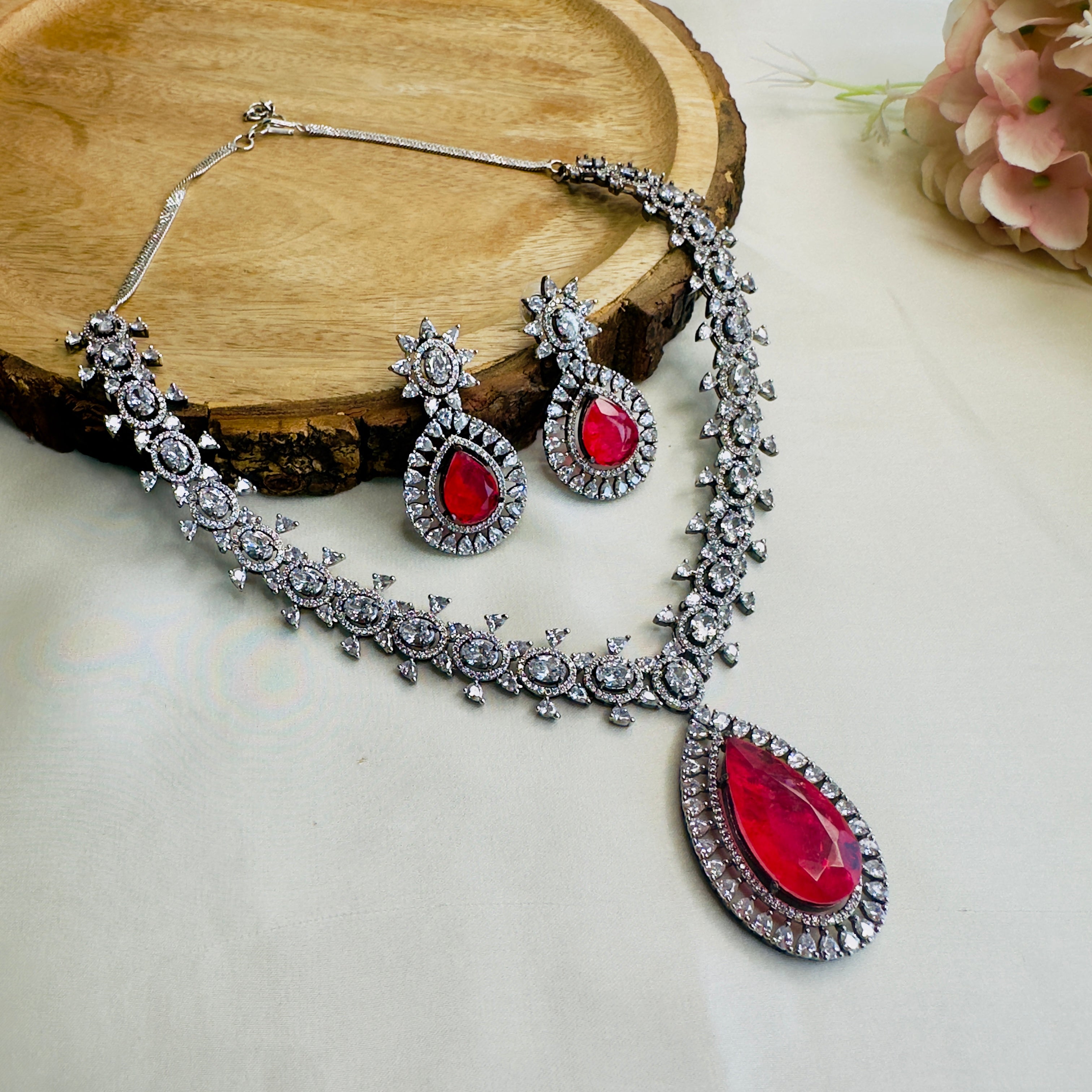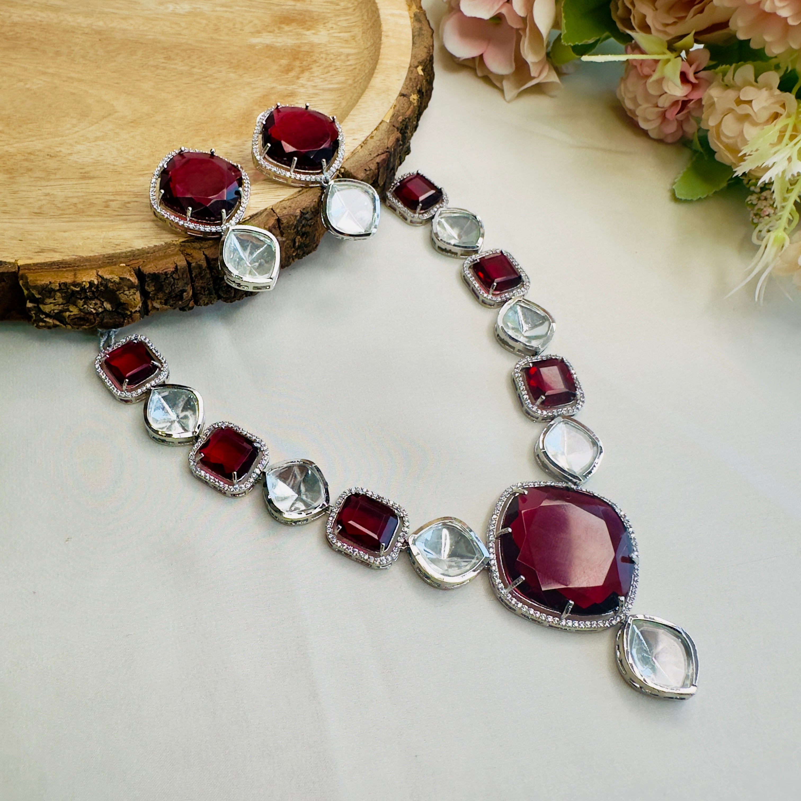 Ruby Red American Diamond Doublet And Kundan Necklace