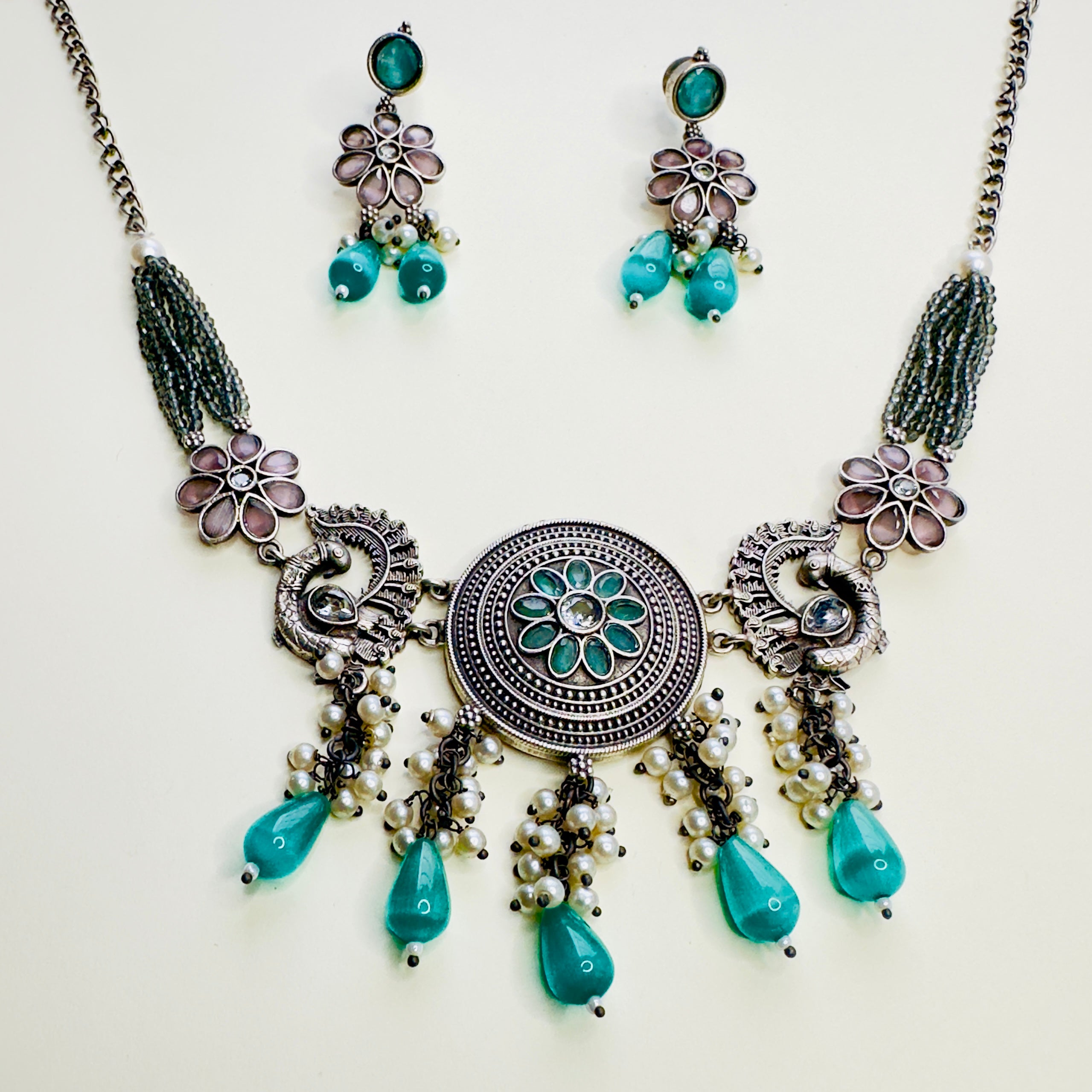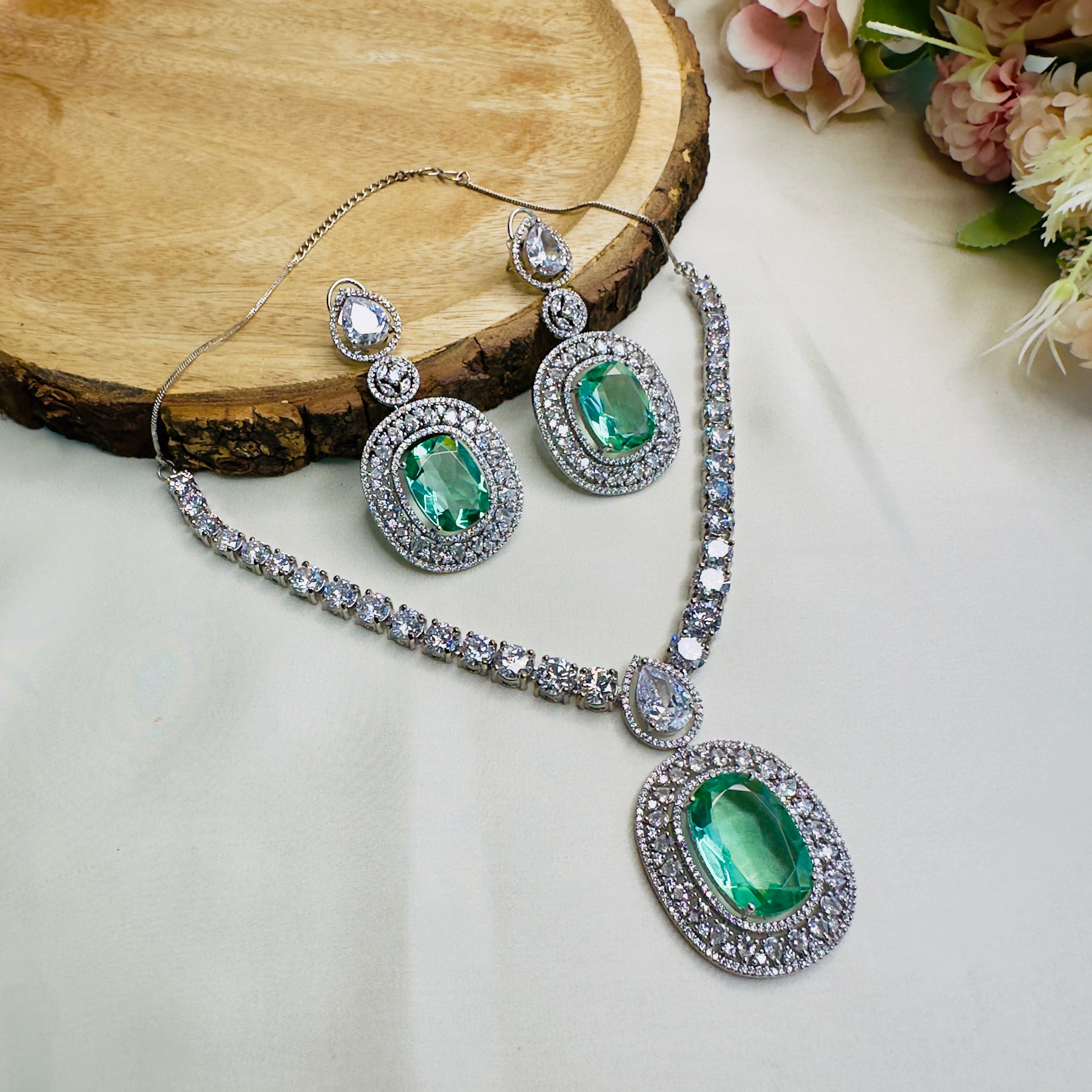 Magnificent American Diamond Studded Olivine Peridot Necklace Set