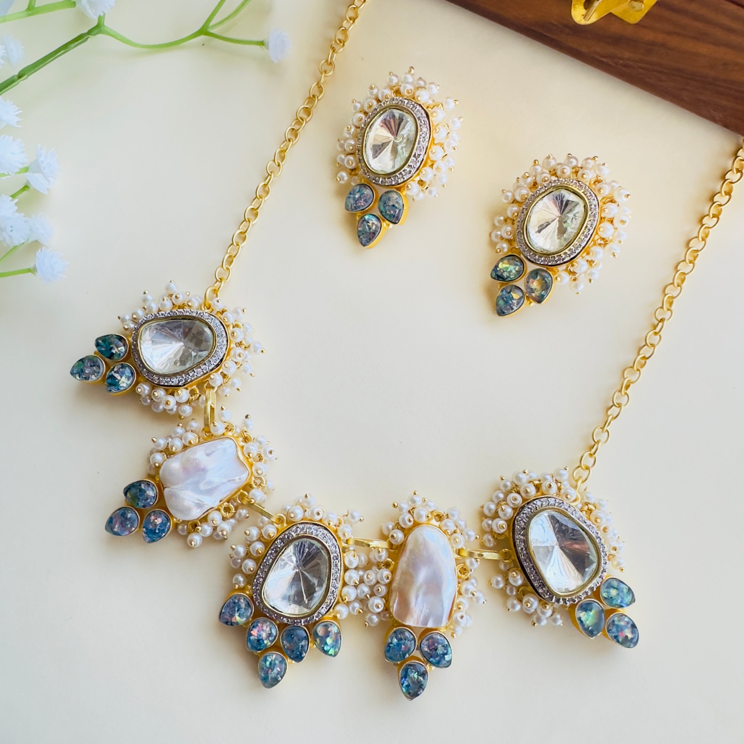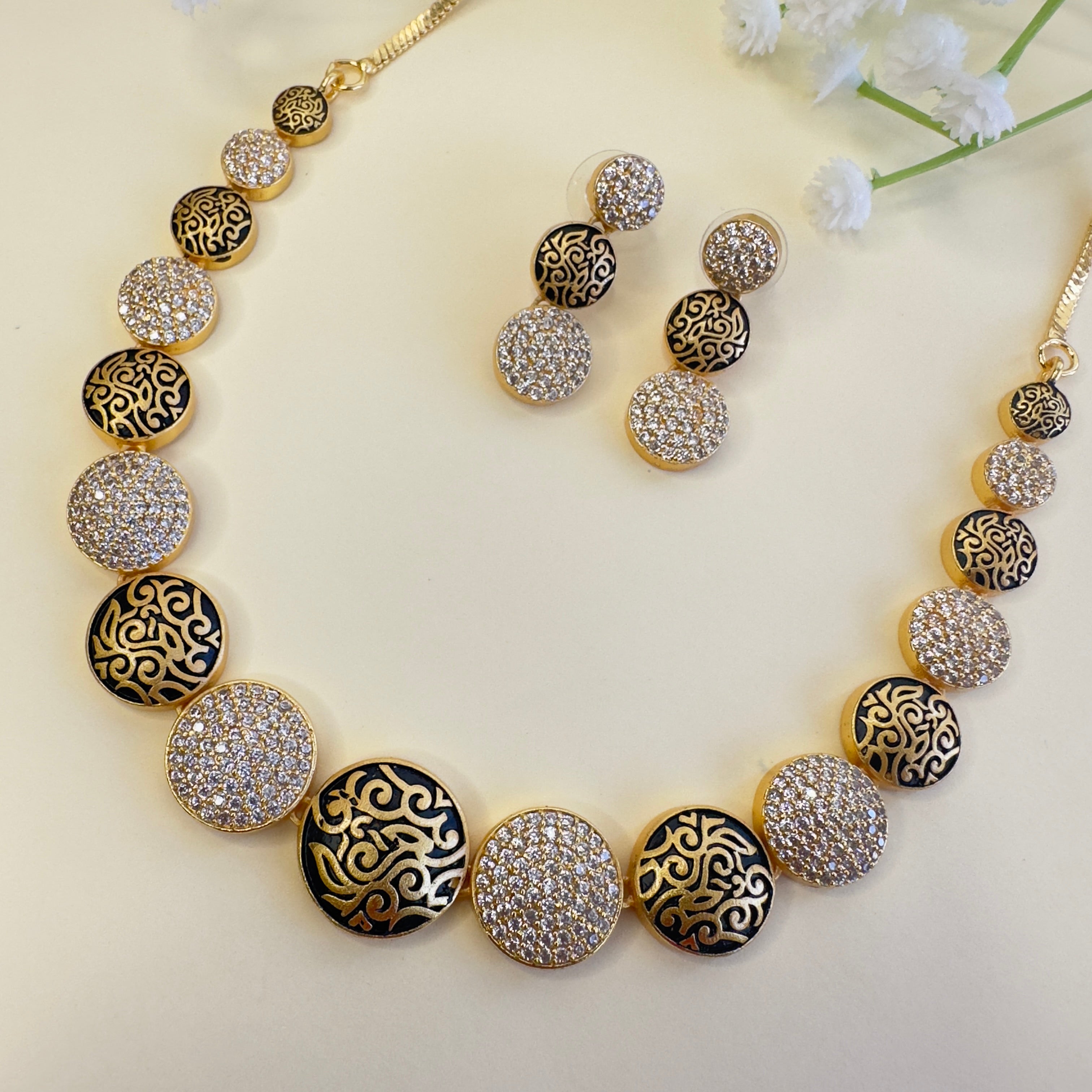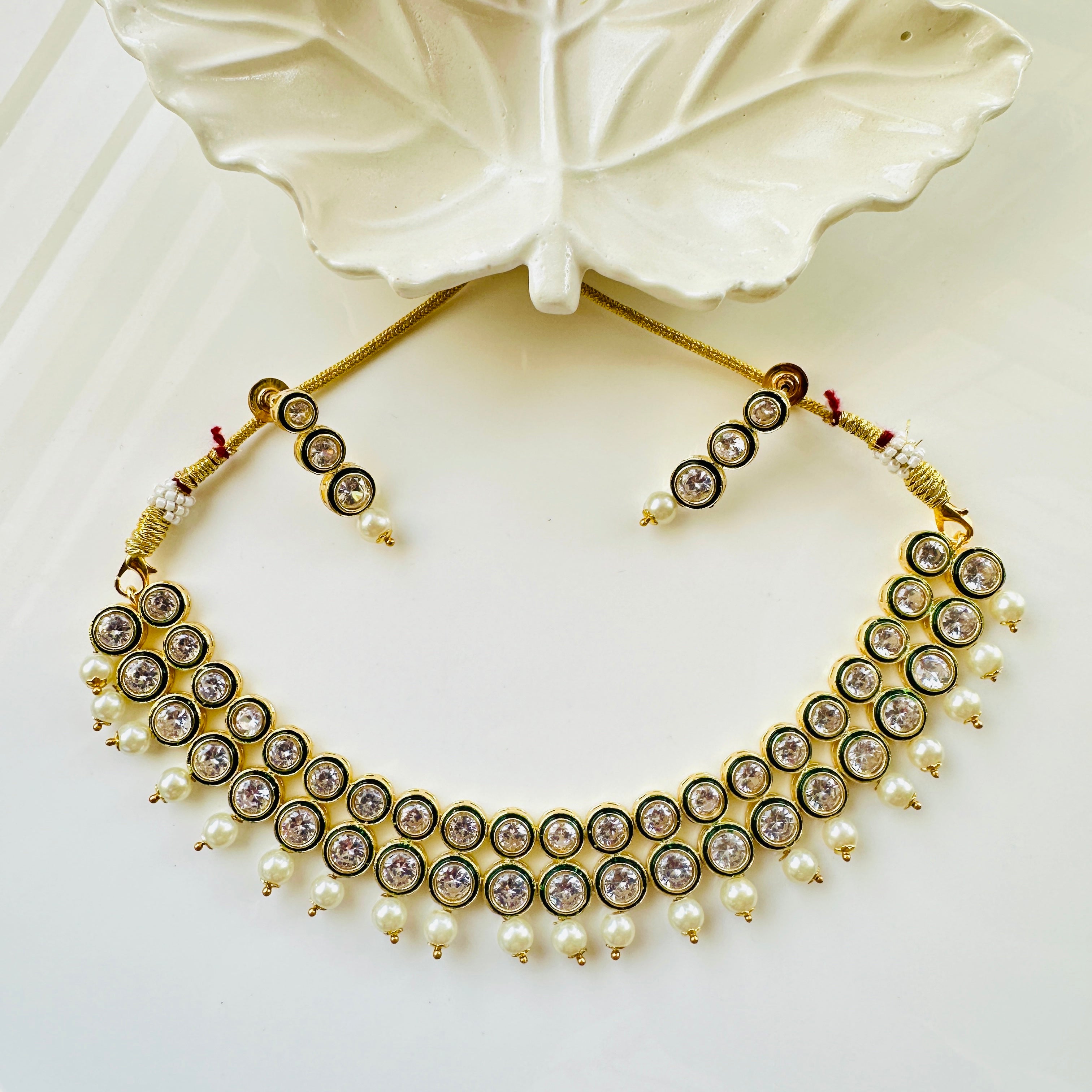 Cubic Shaped Silver American Diamond Choker Necklace Set