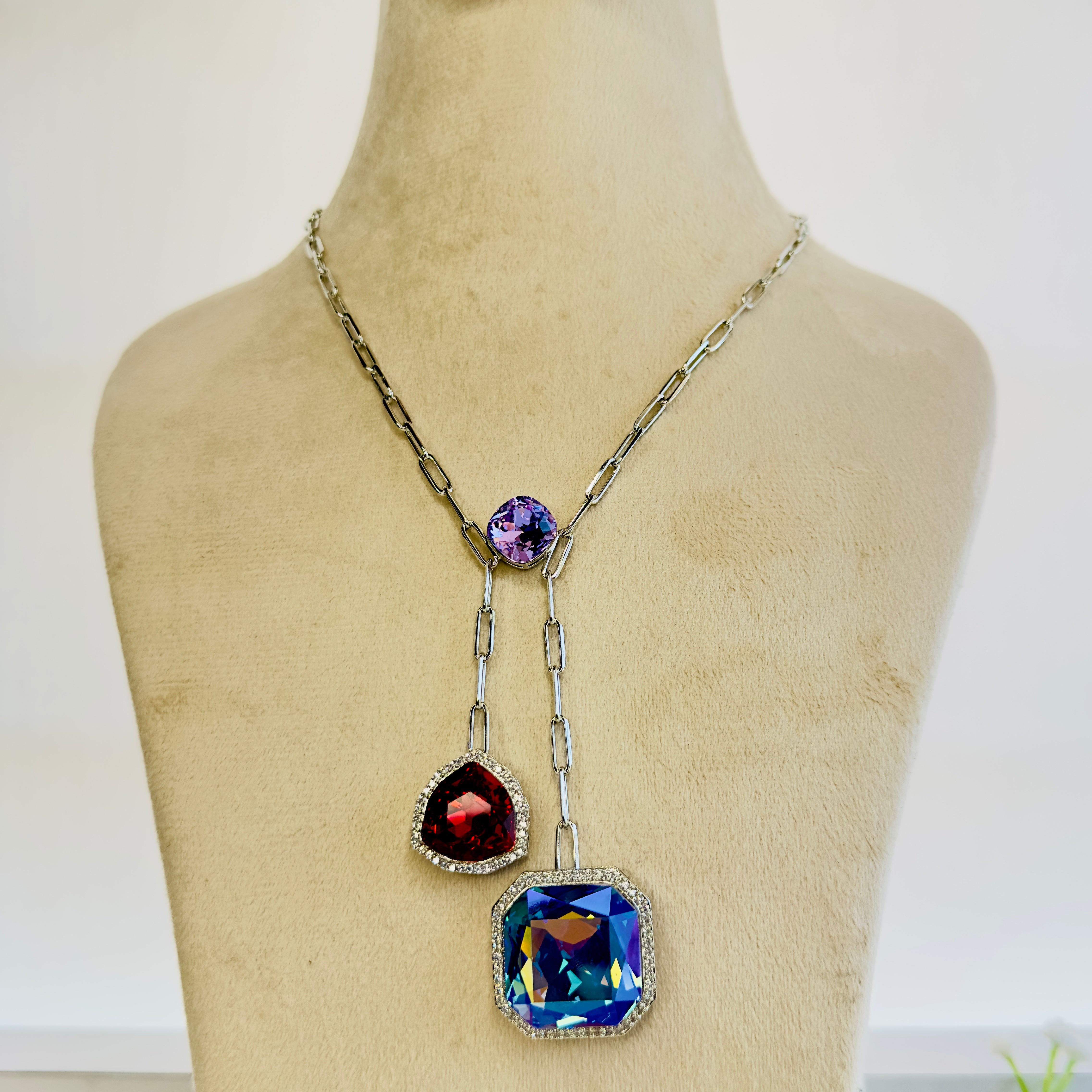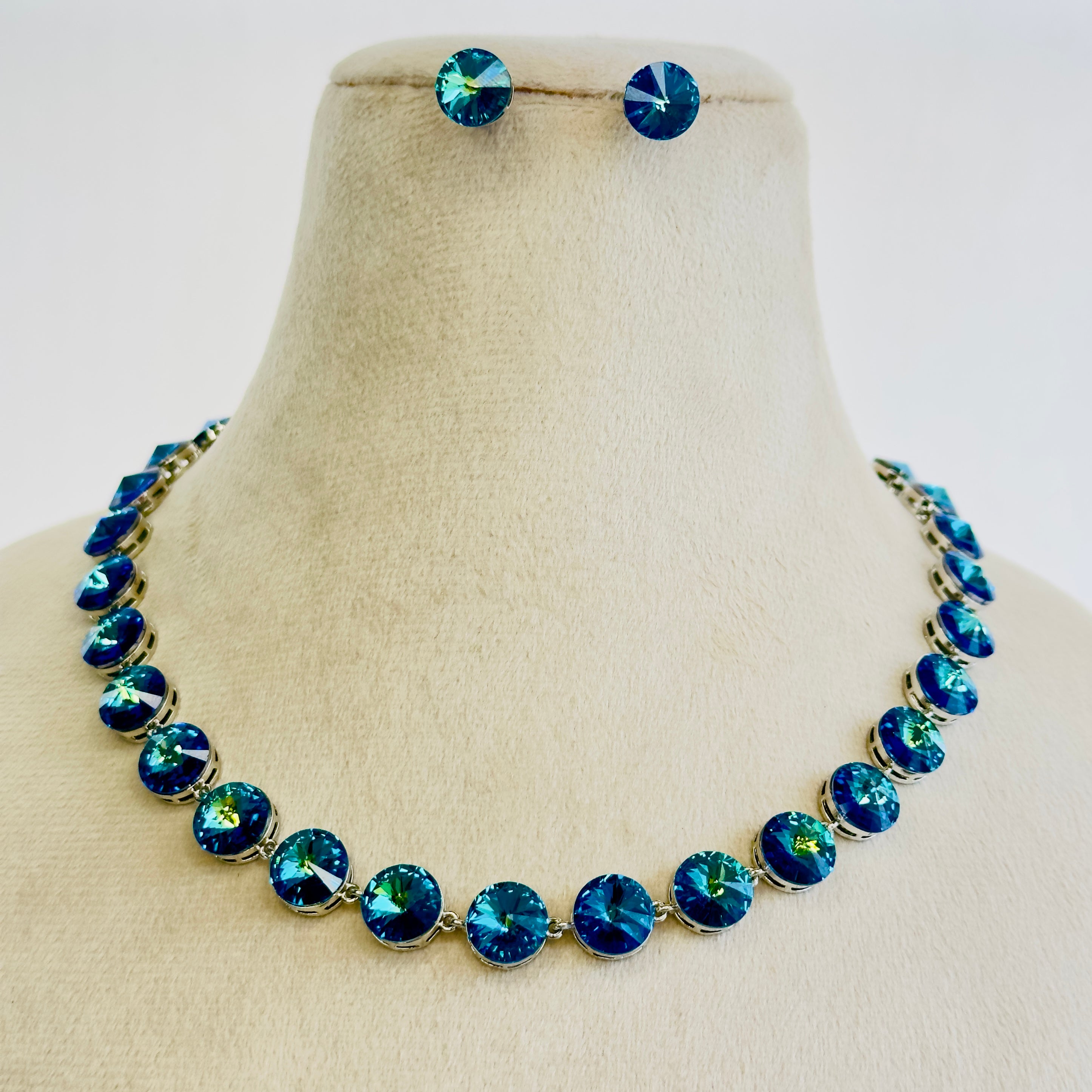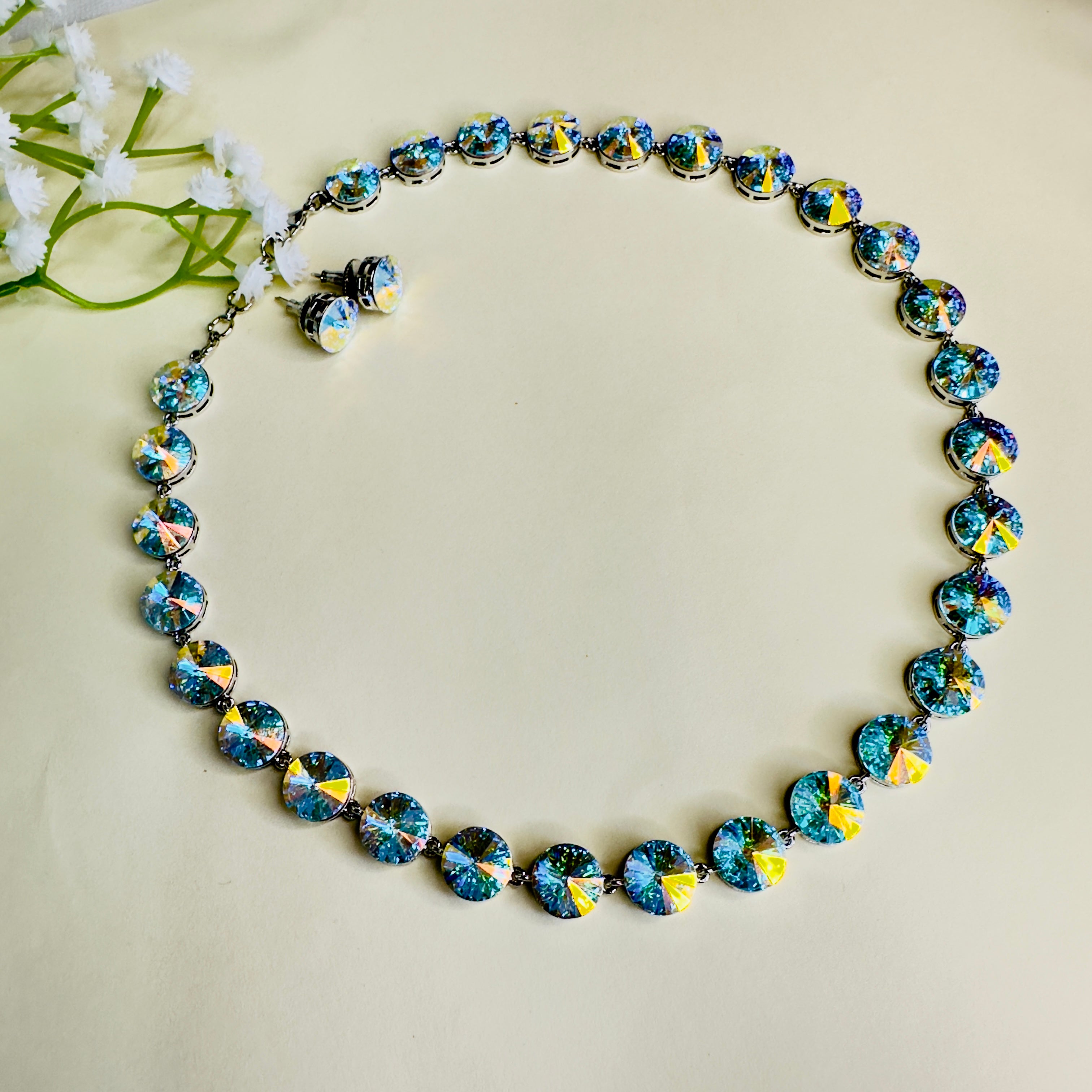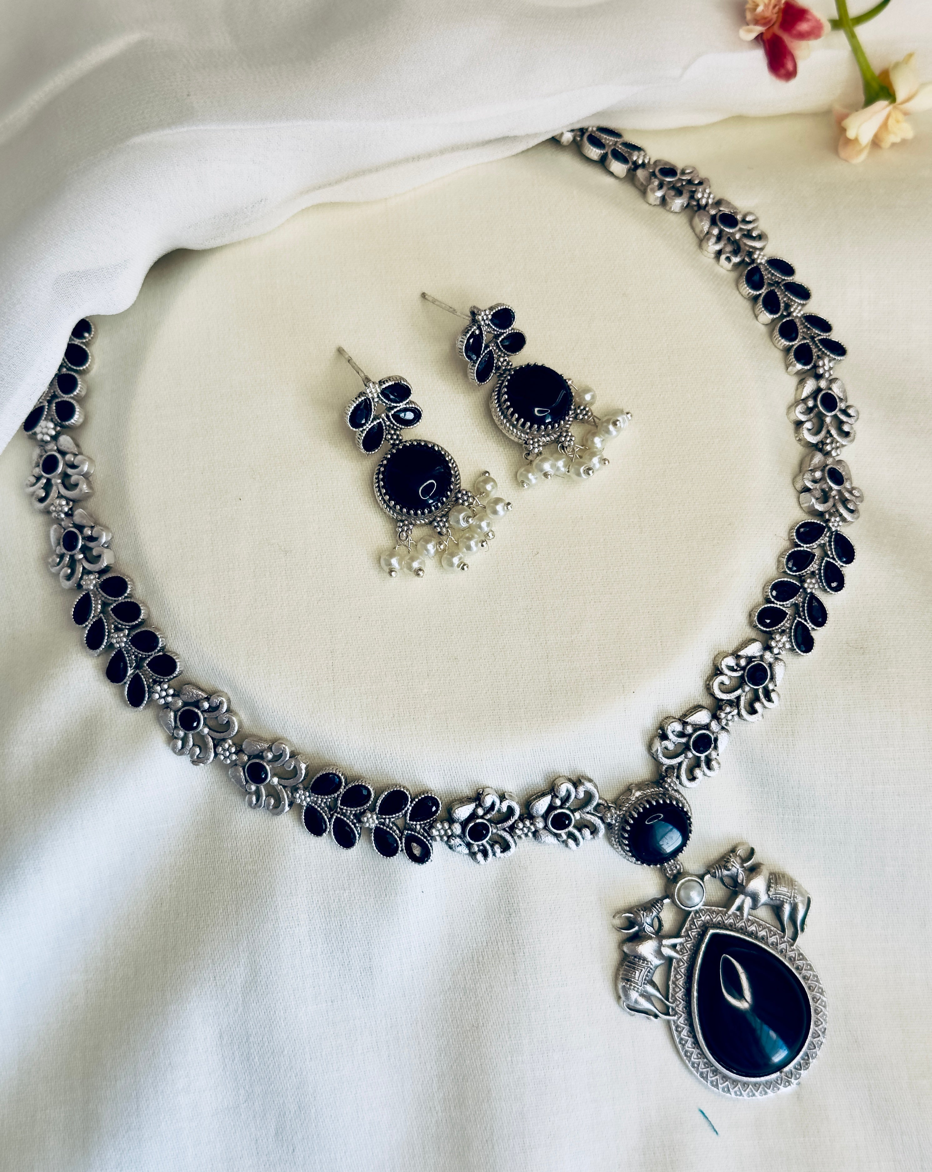 Cubic Shaped Silver American Diamond Choker Necklace Set