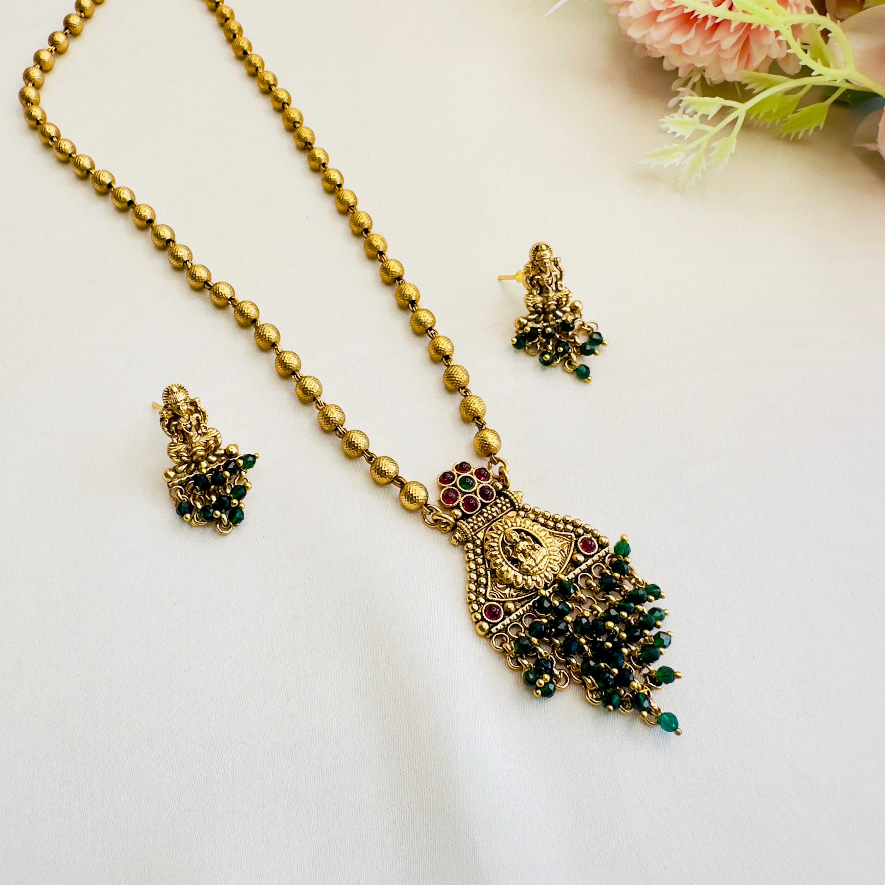 Long Apala Polish Silver Replica Chain Pendant with earrings
