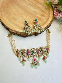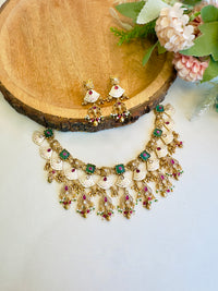 Fish Motif Multicolor Pachi Kundan Silver Necklace Set