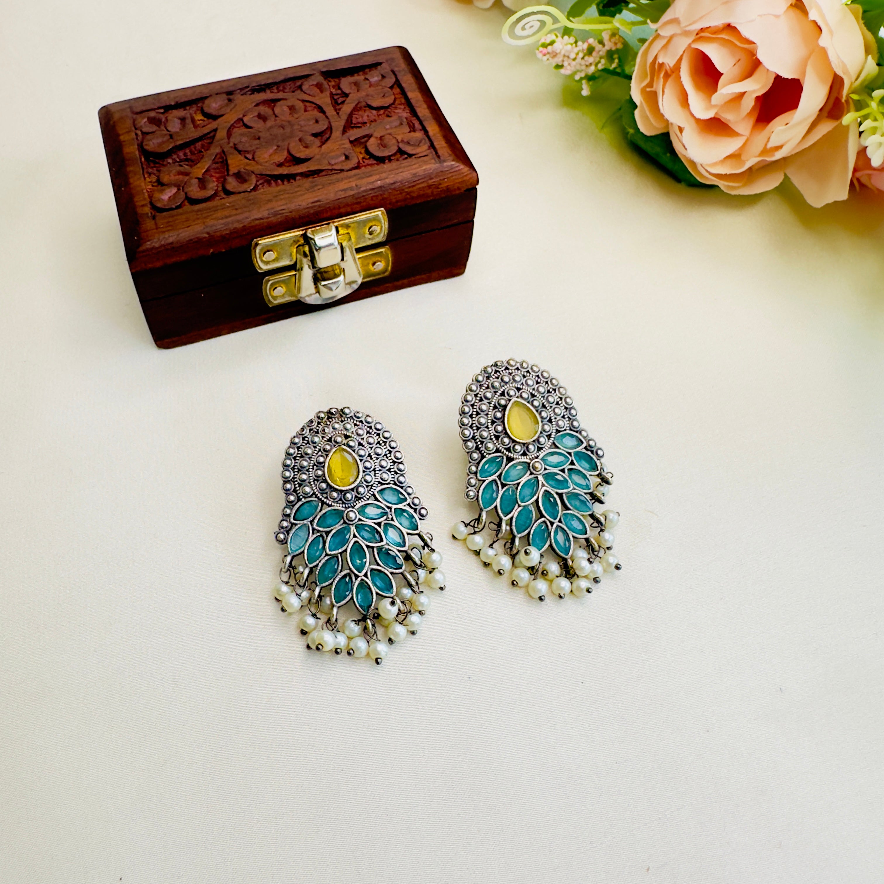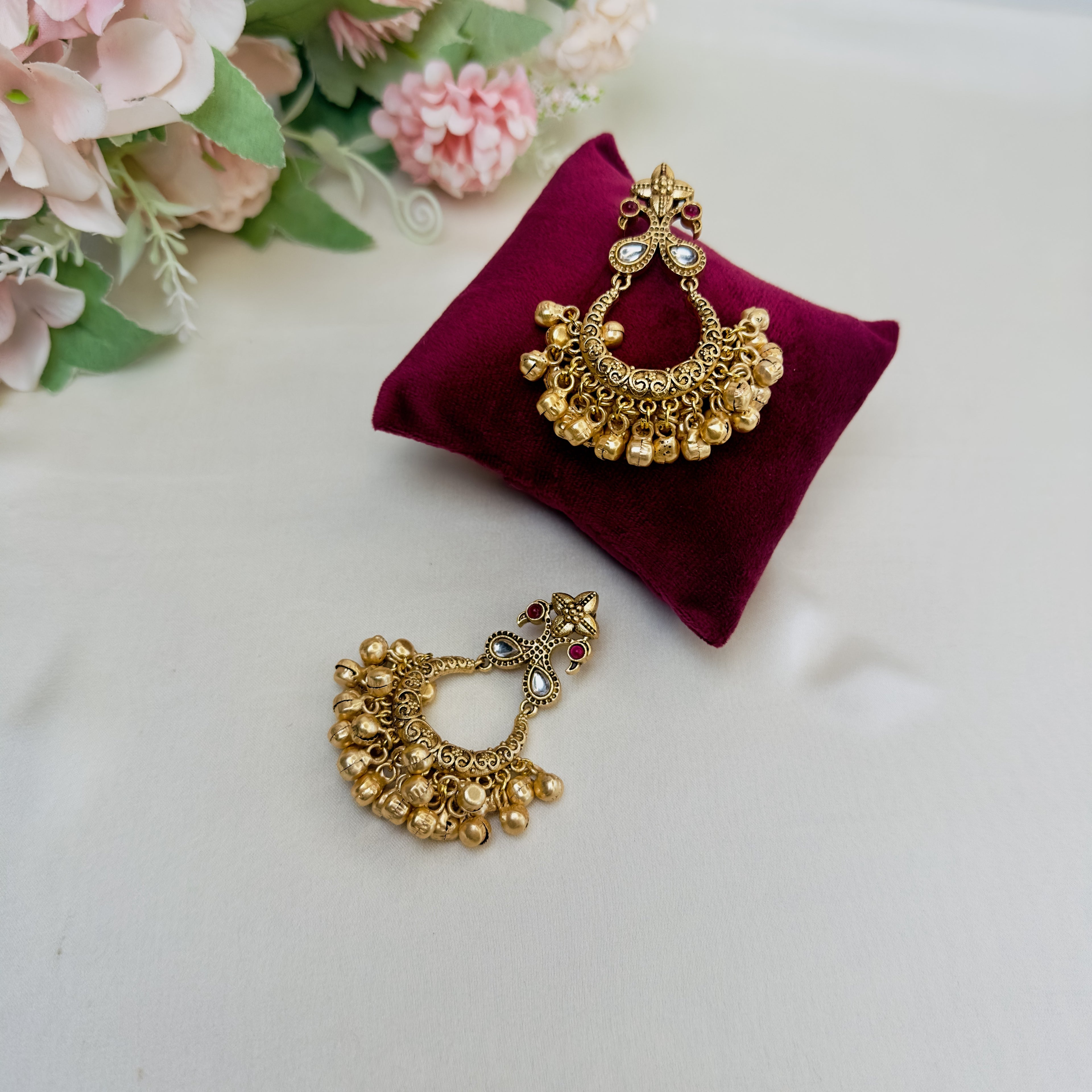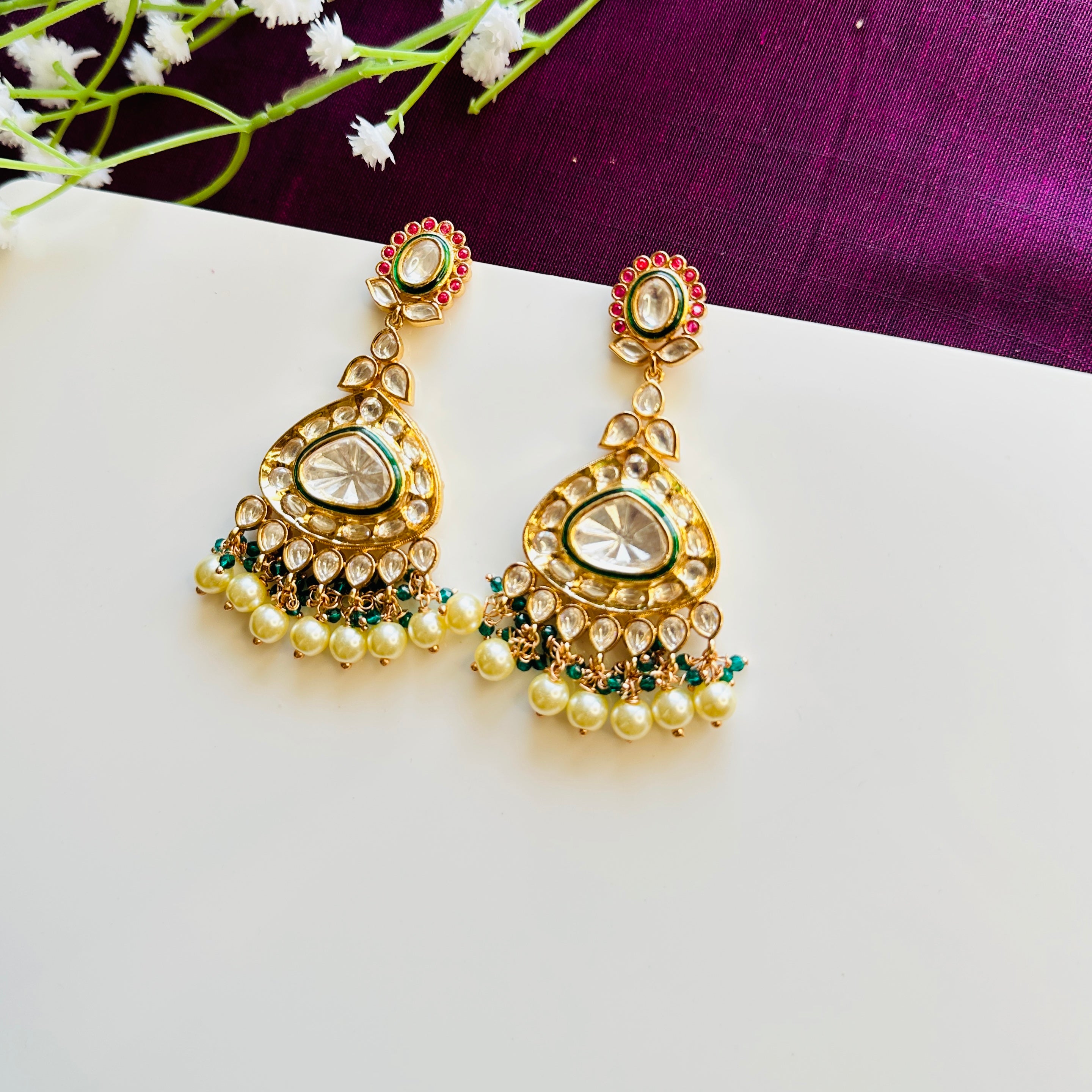 Elephant Motif Pachi Kundan Apala Polish Jhumki Earrings