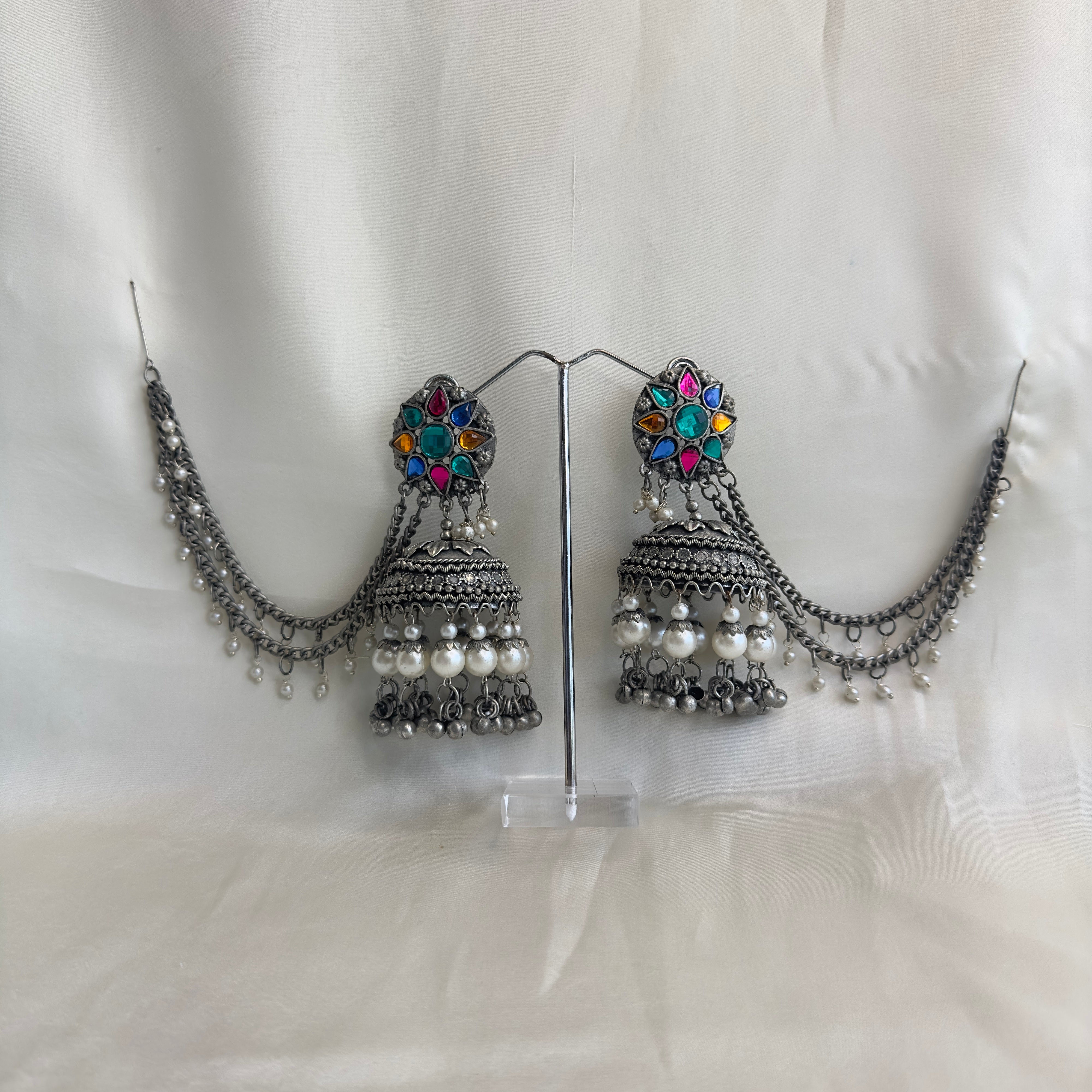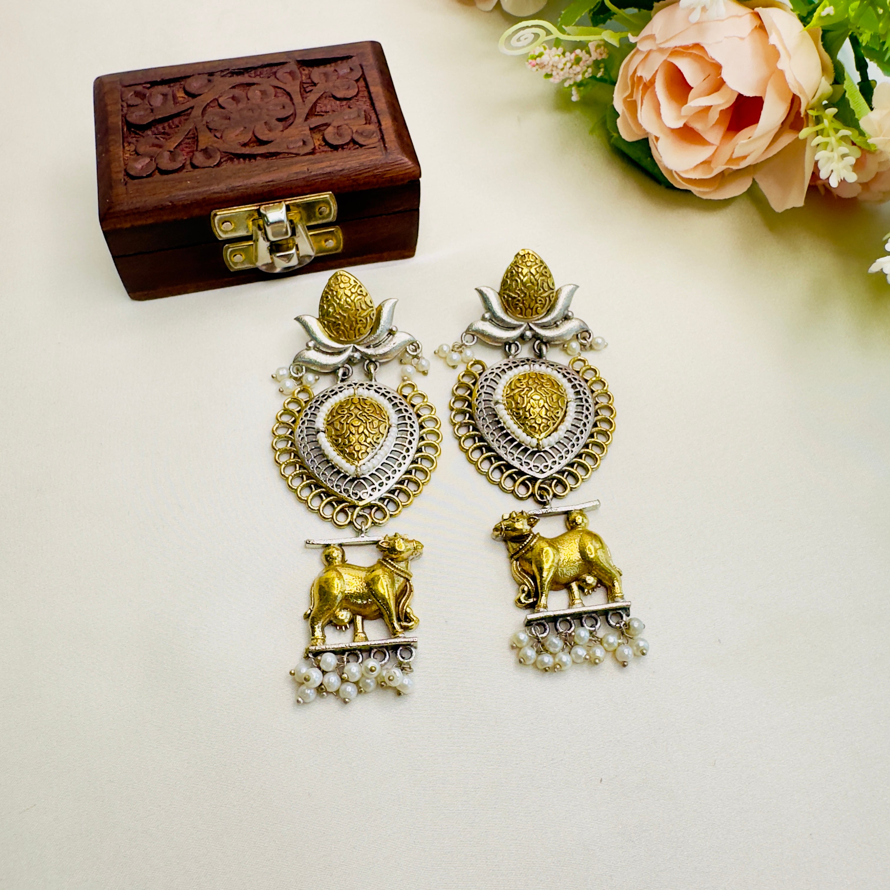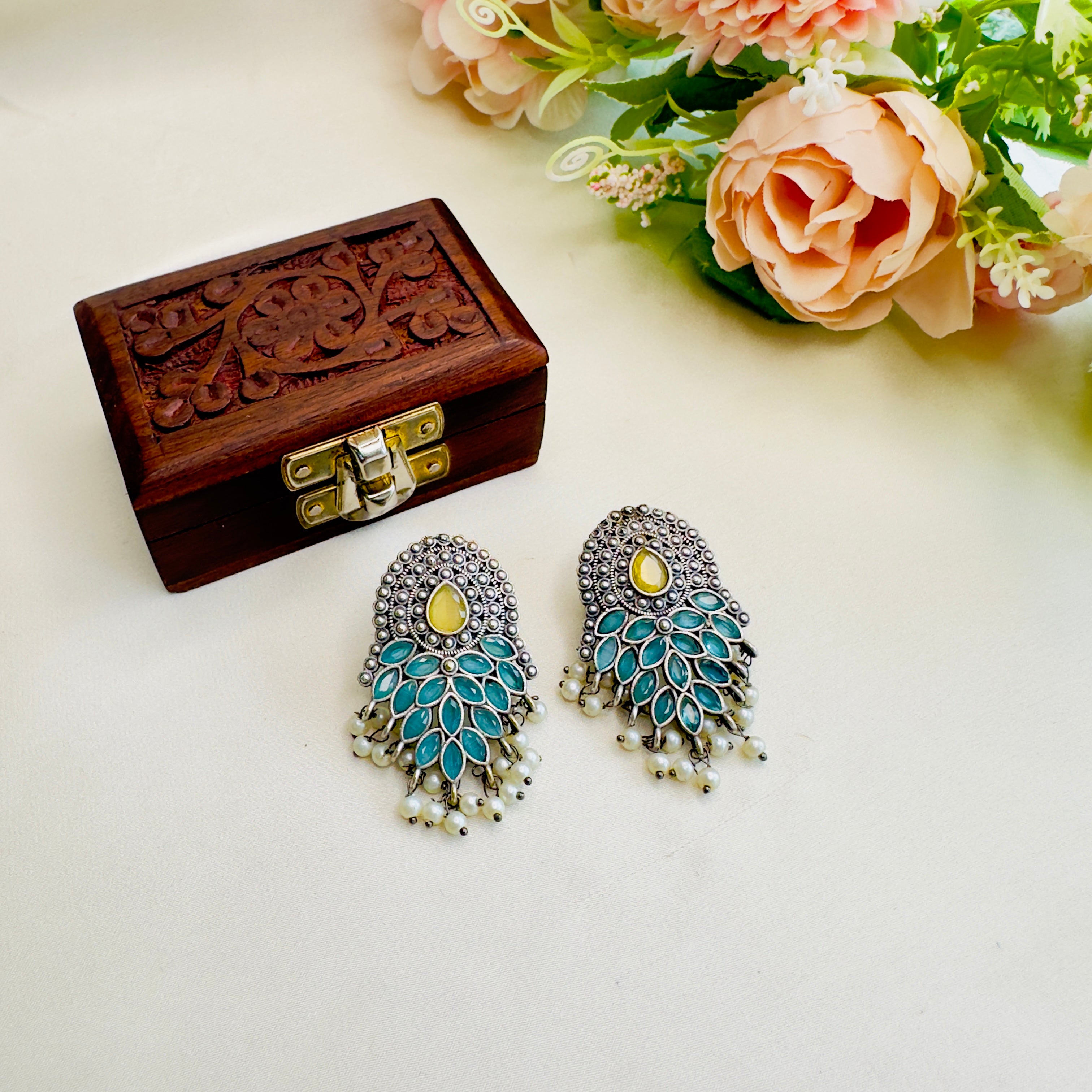 Elephant Motif Pachi Kundan Apala Polish Jhumki Earrings