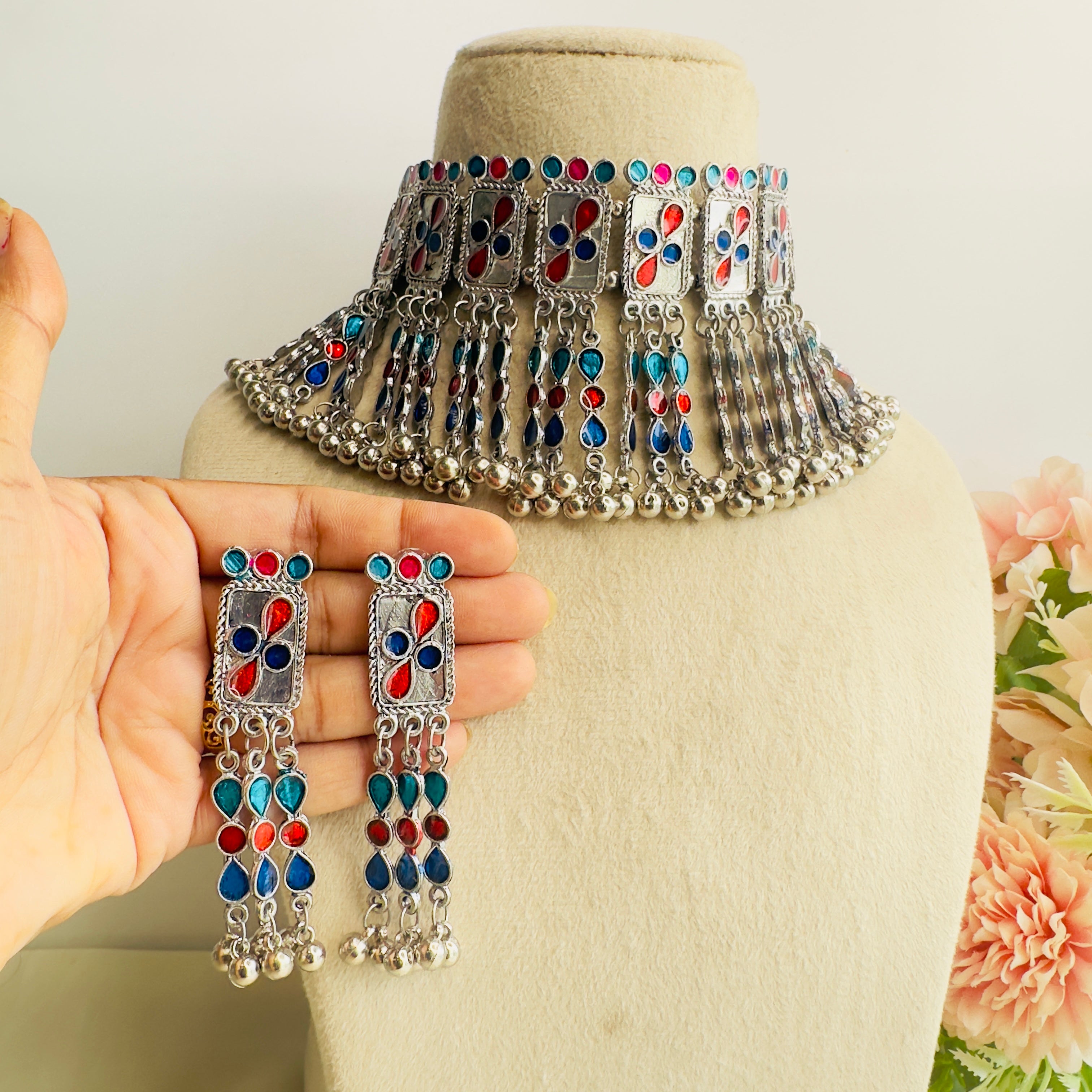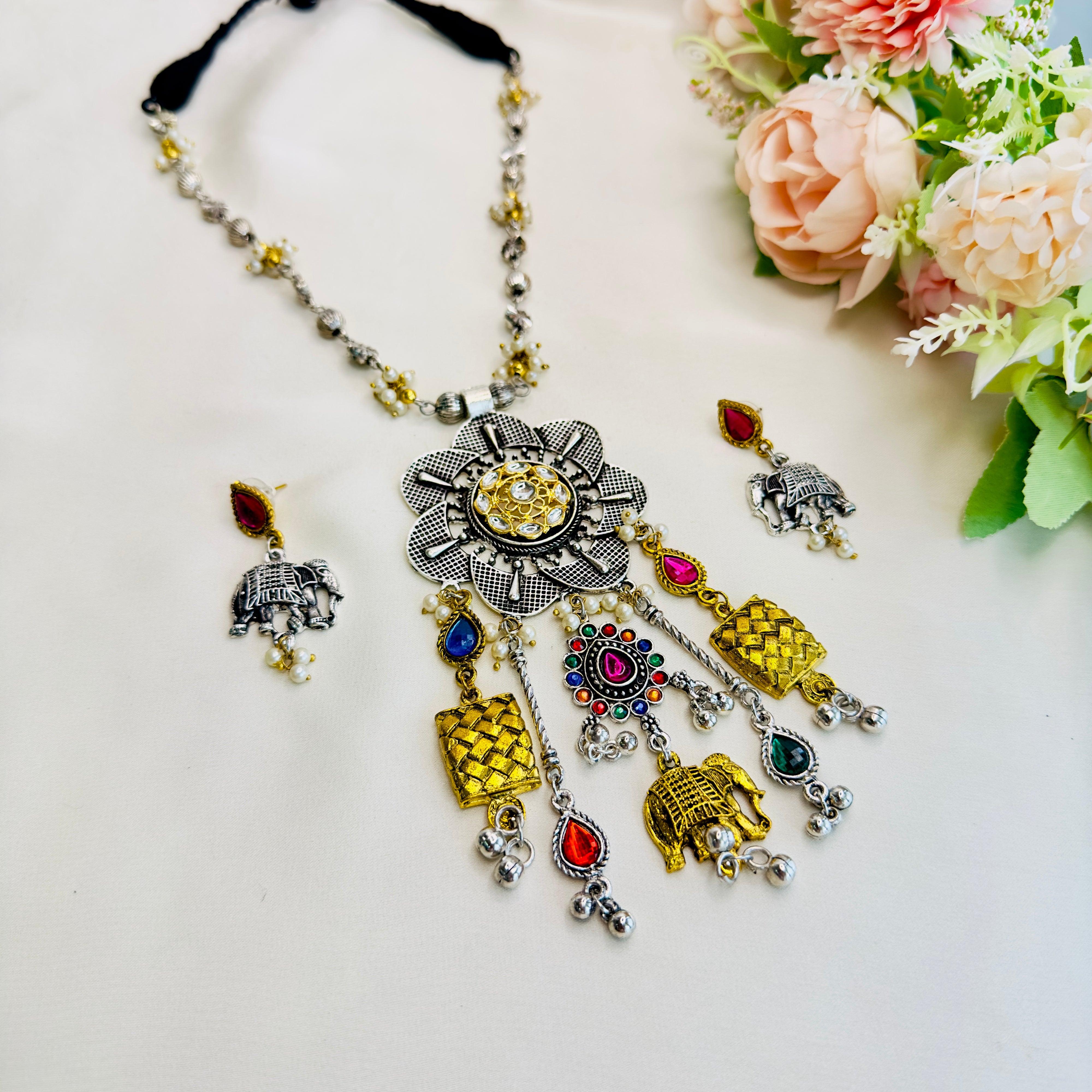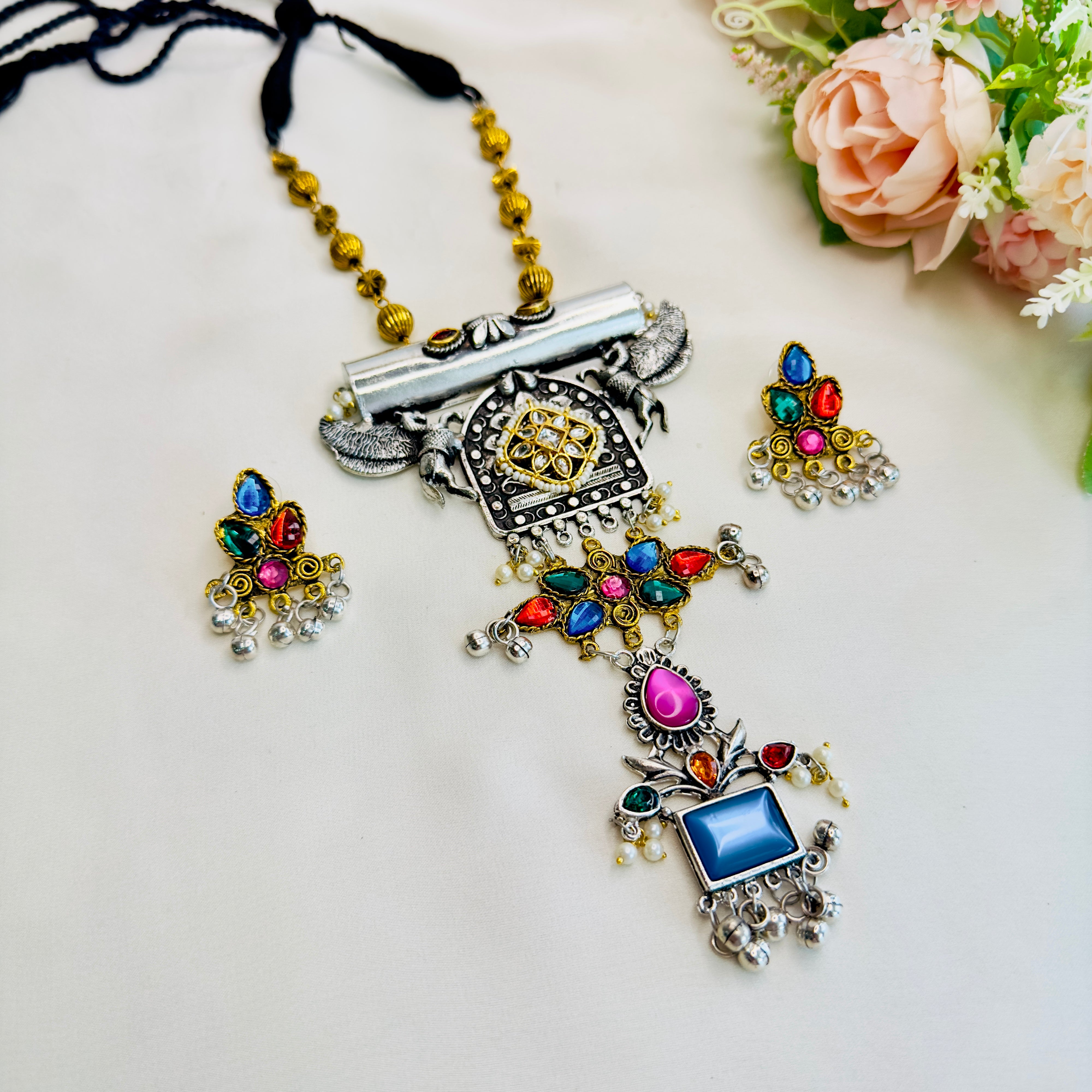 Tie Chain Pattern Multicolor Oxidized Necklace Set