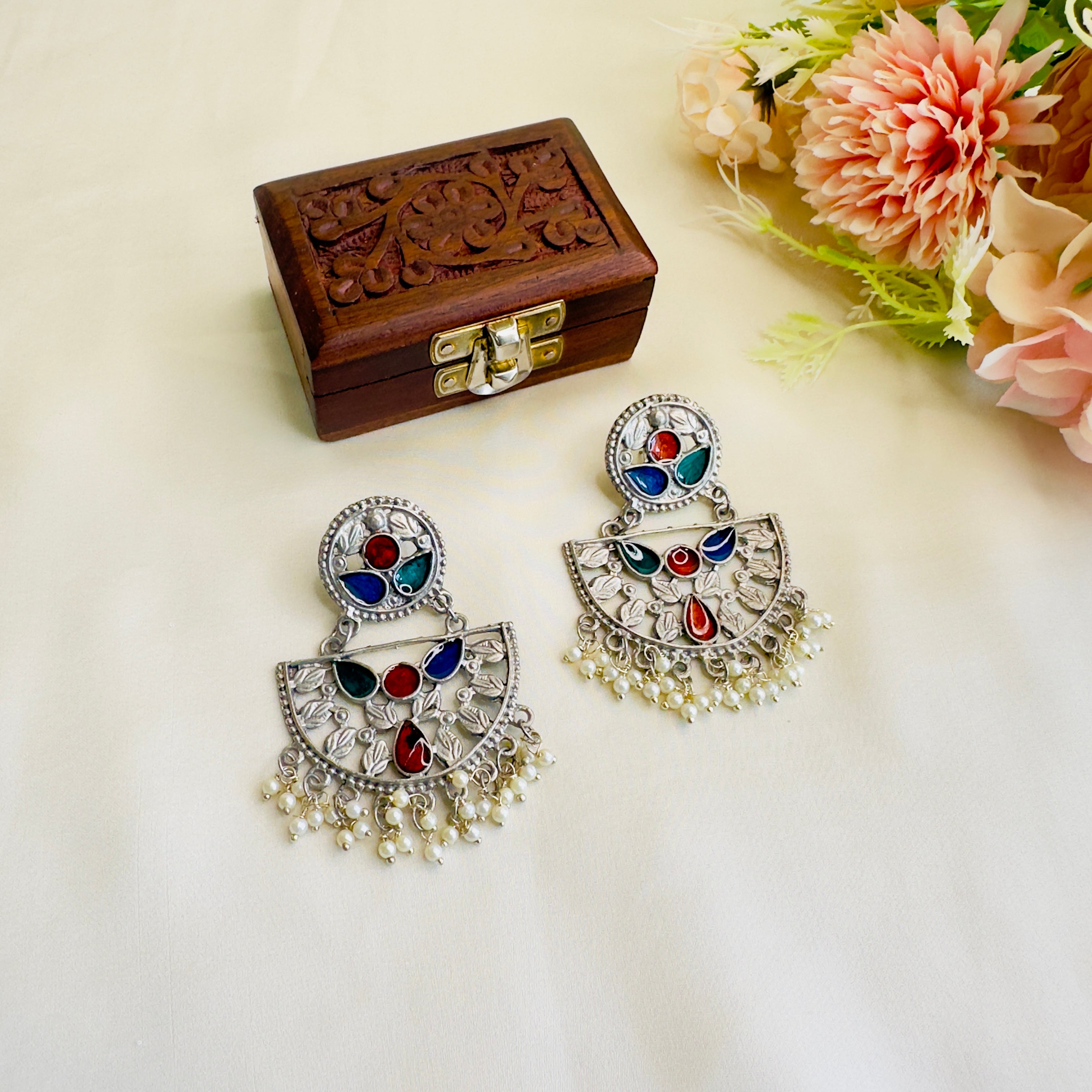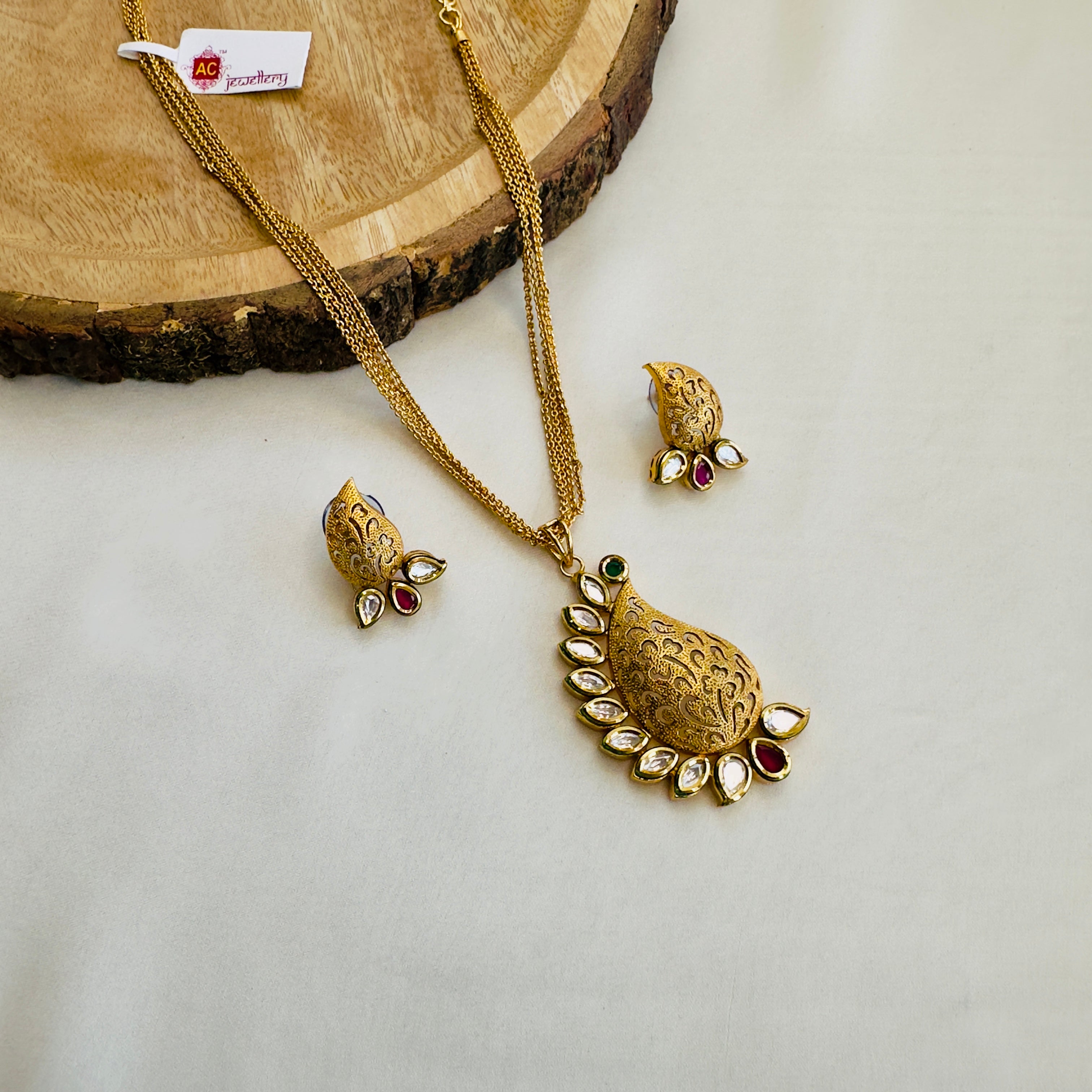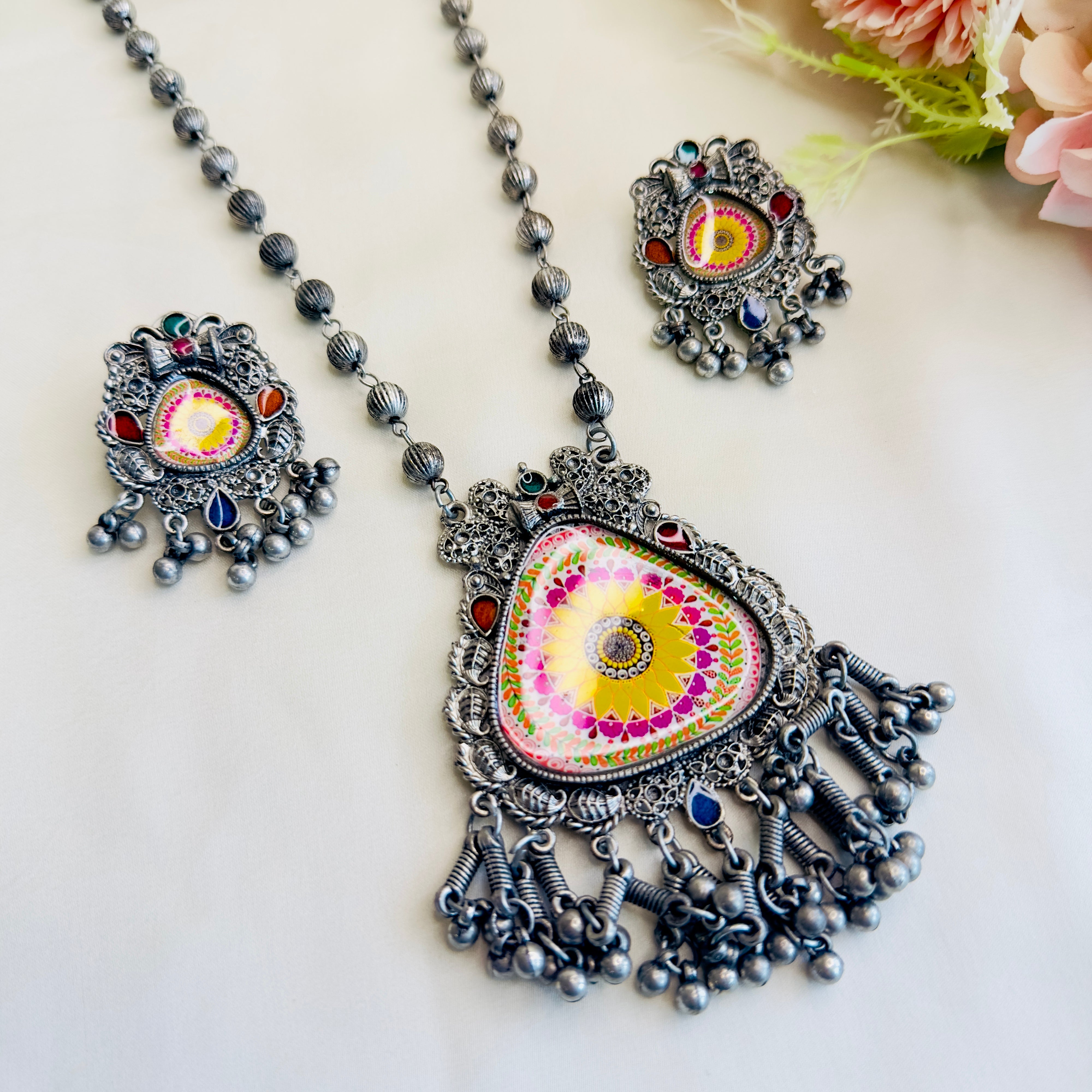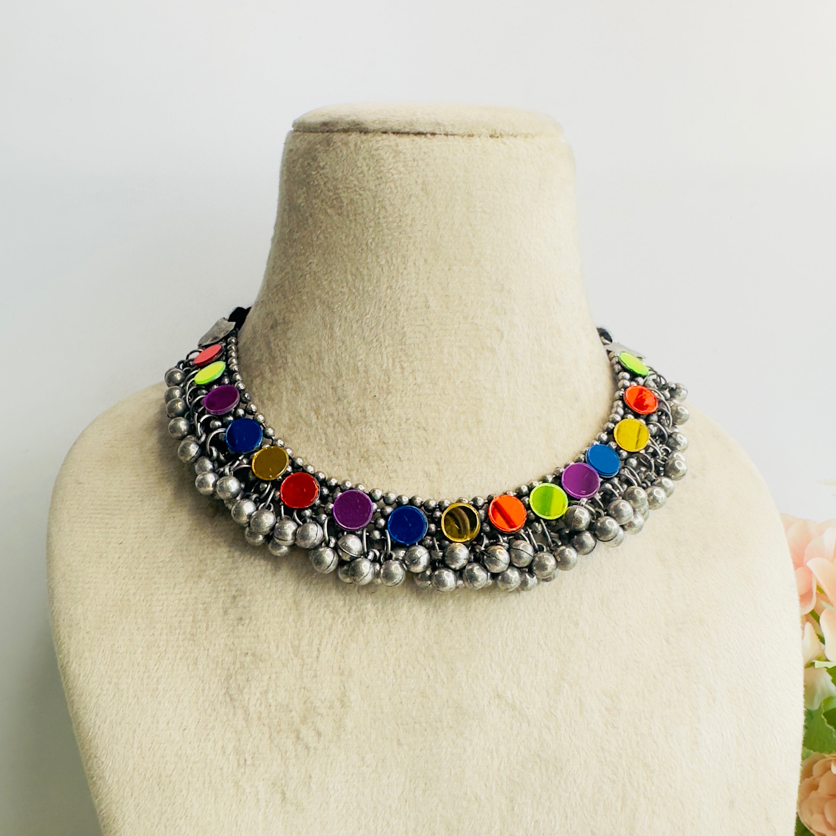 Tie Chain Pattern Multicolor Oxidized Necklace Set
