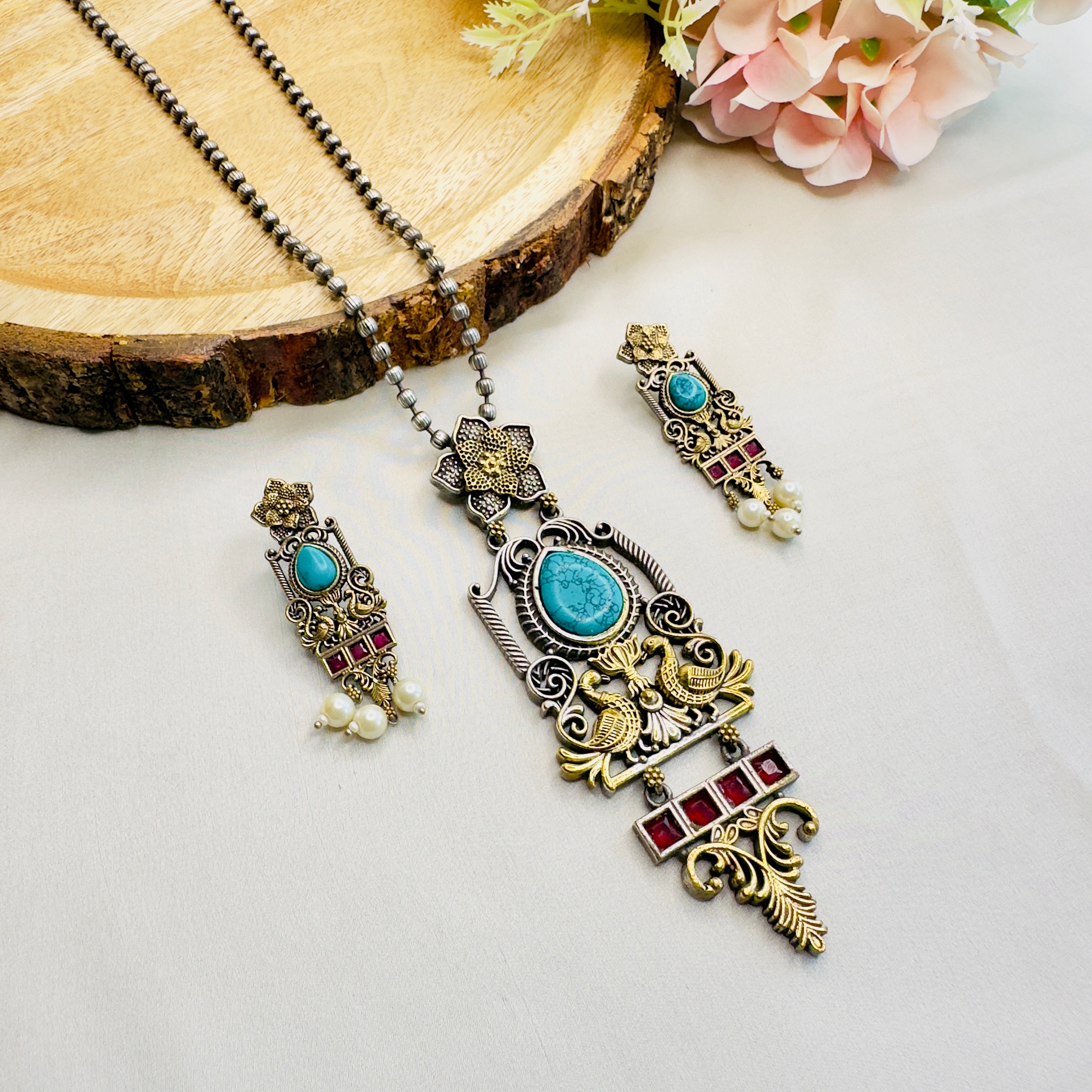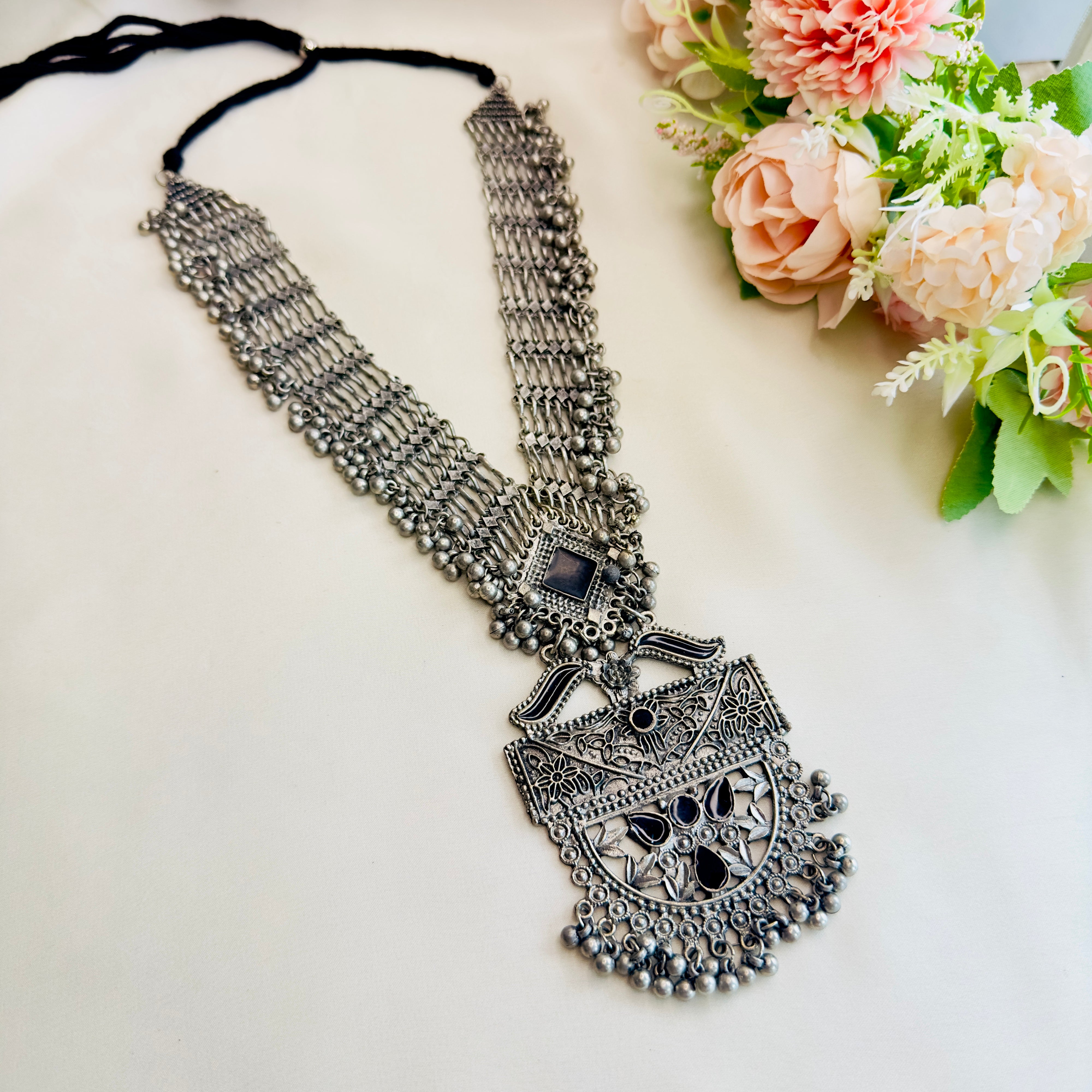 Long Oxidized Necklace Set