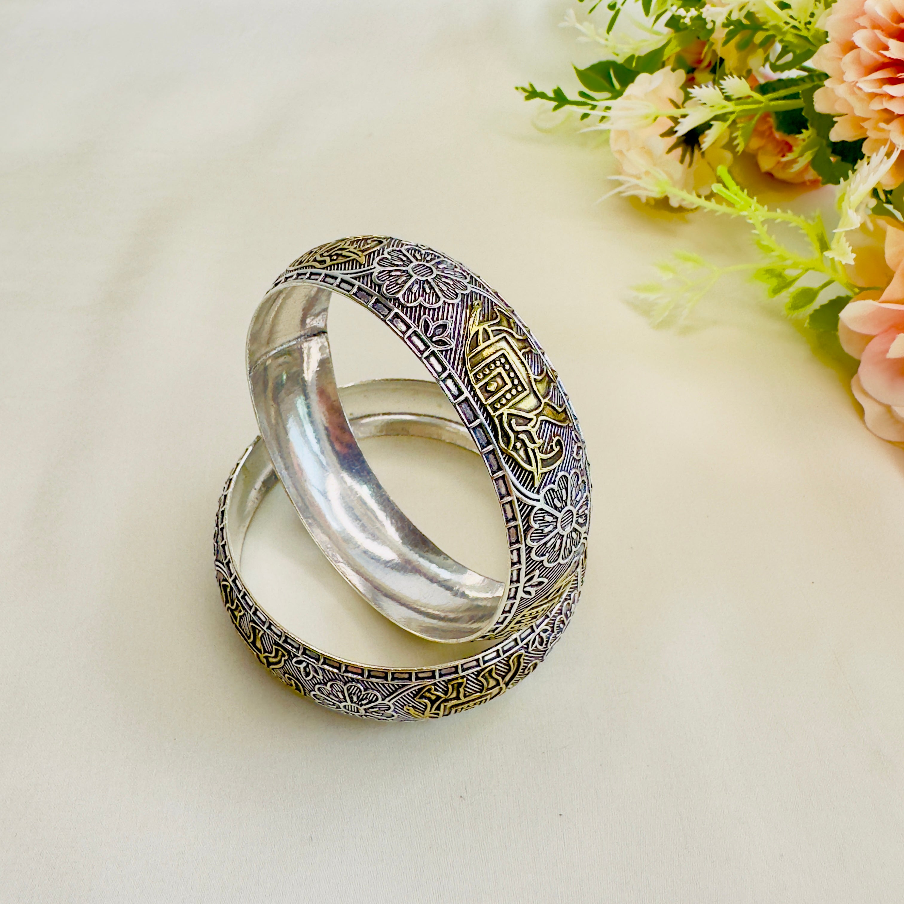 Dual Tone Elephant carving Bangles
