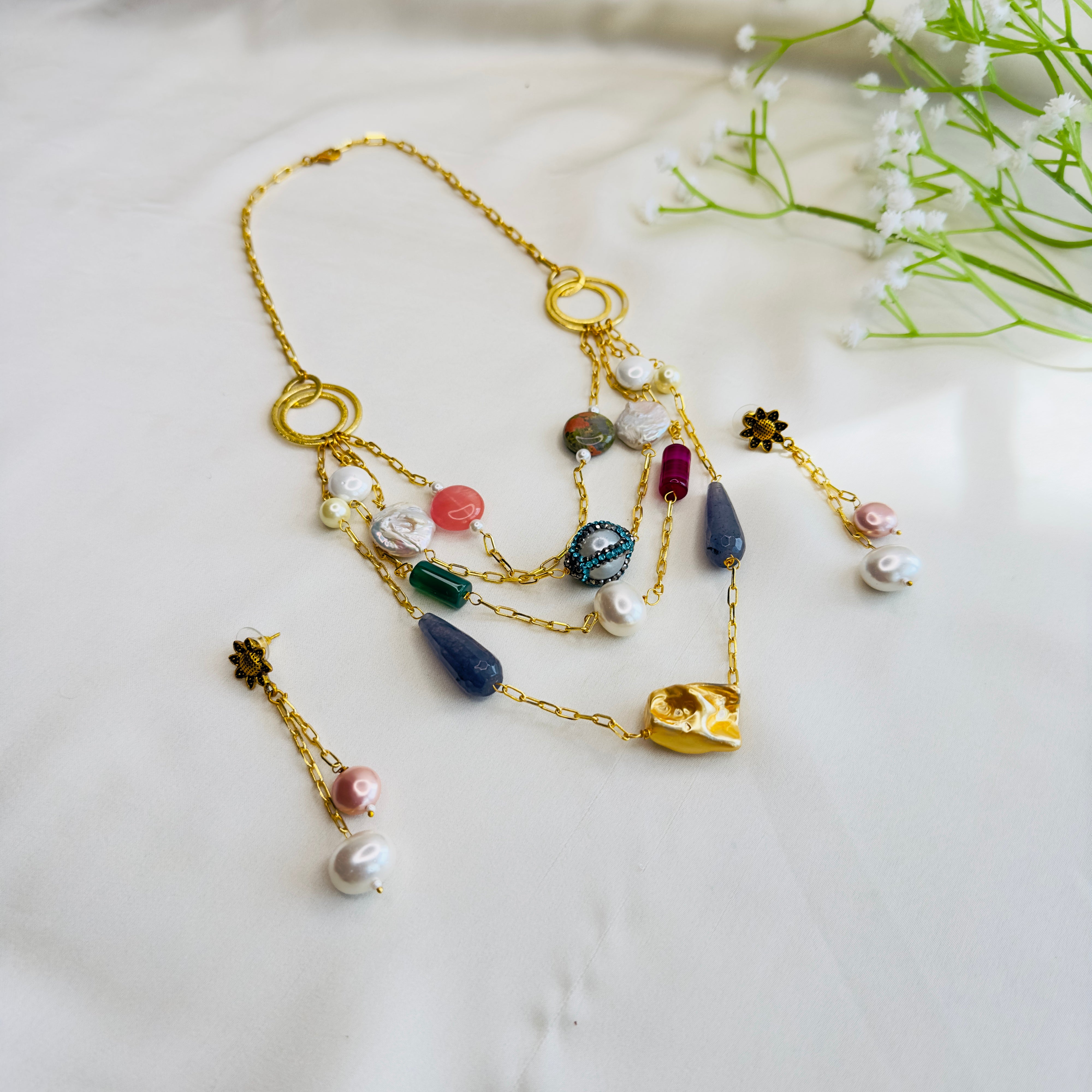 Natural Stone three layered Necklace