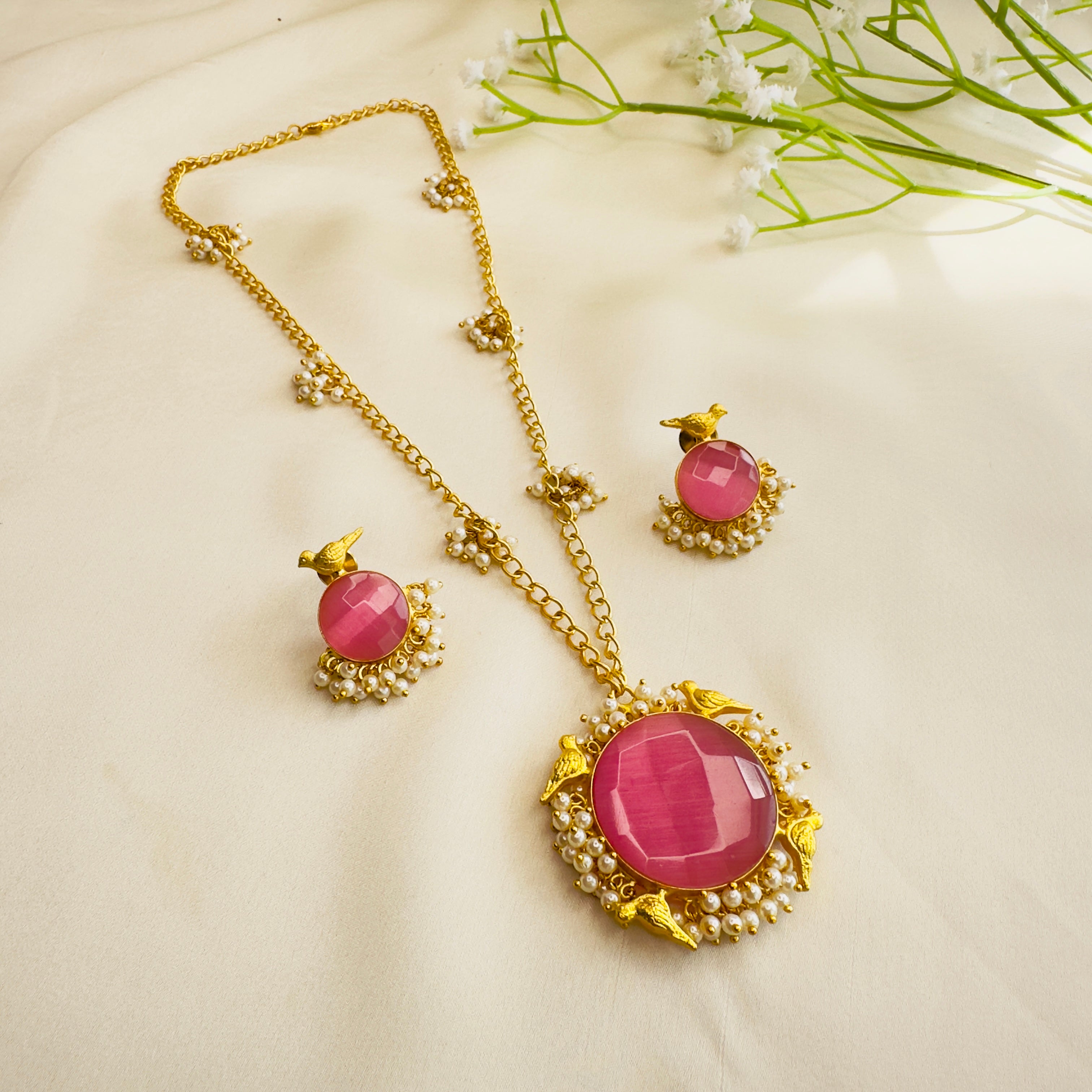 Pearl Work Chain Pendant Set