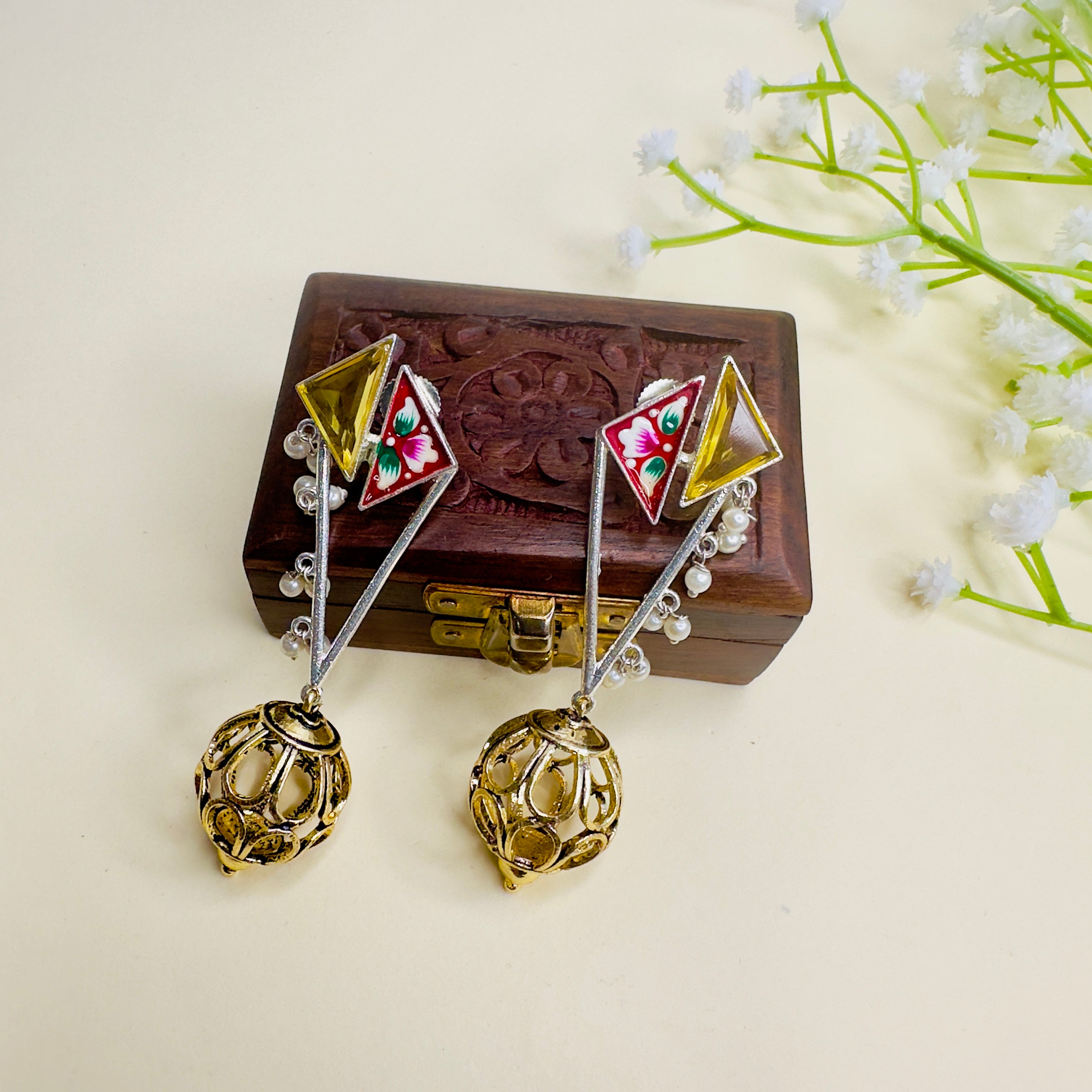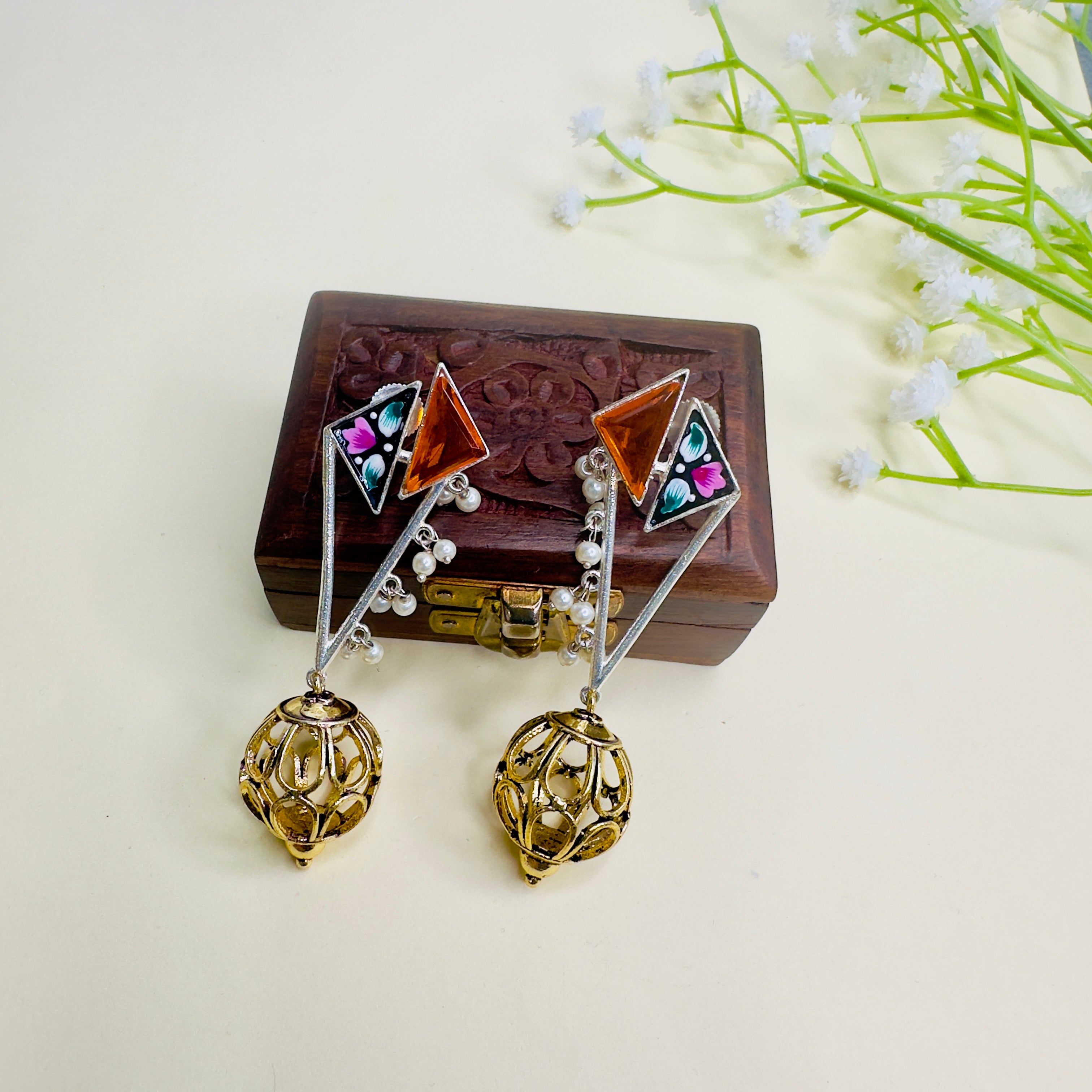 Hand Painted Dual Polish Silver Replica Earrings