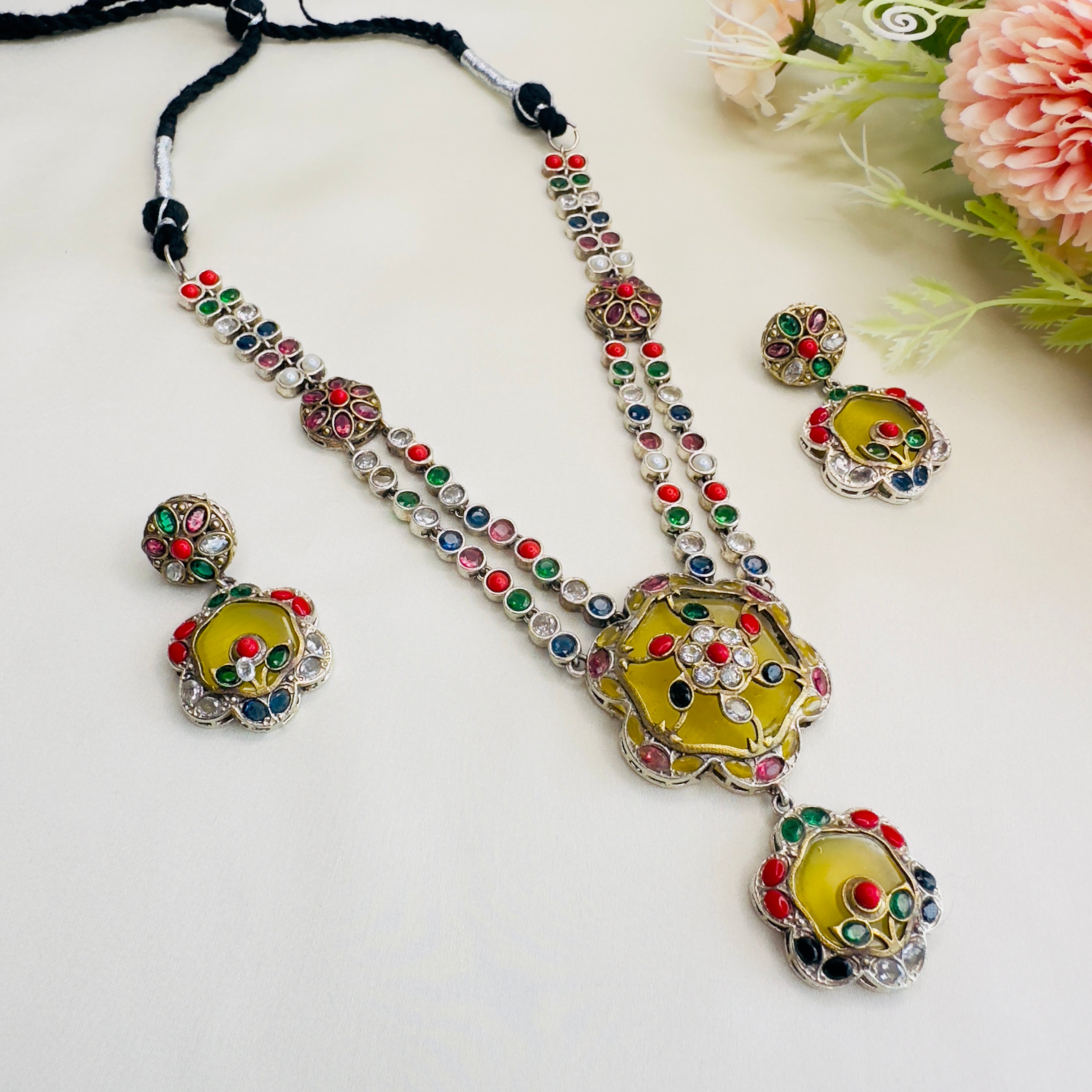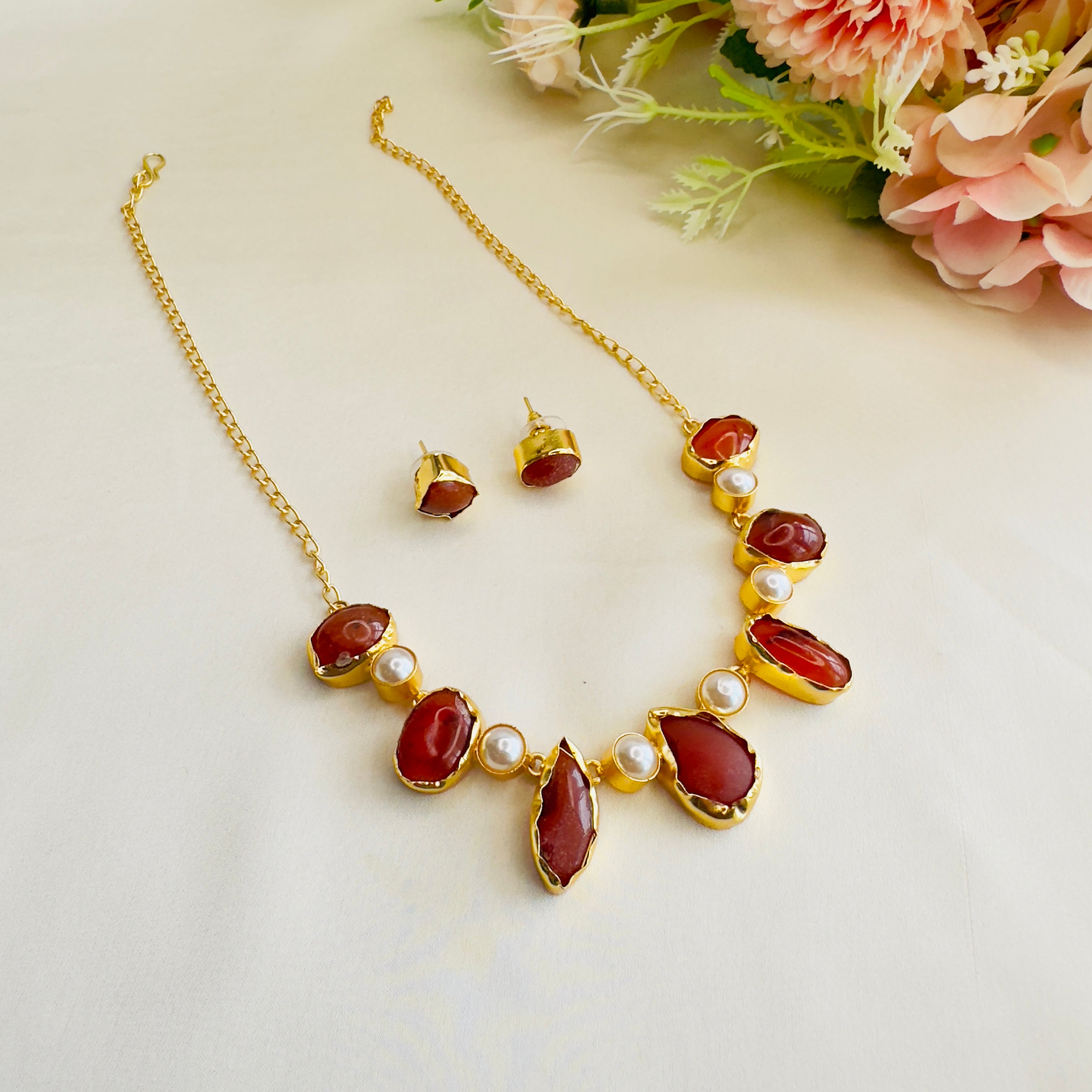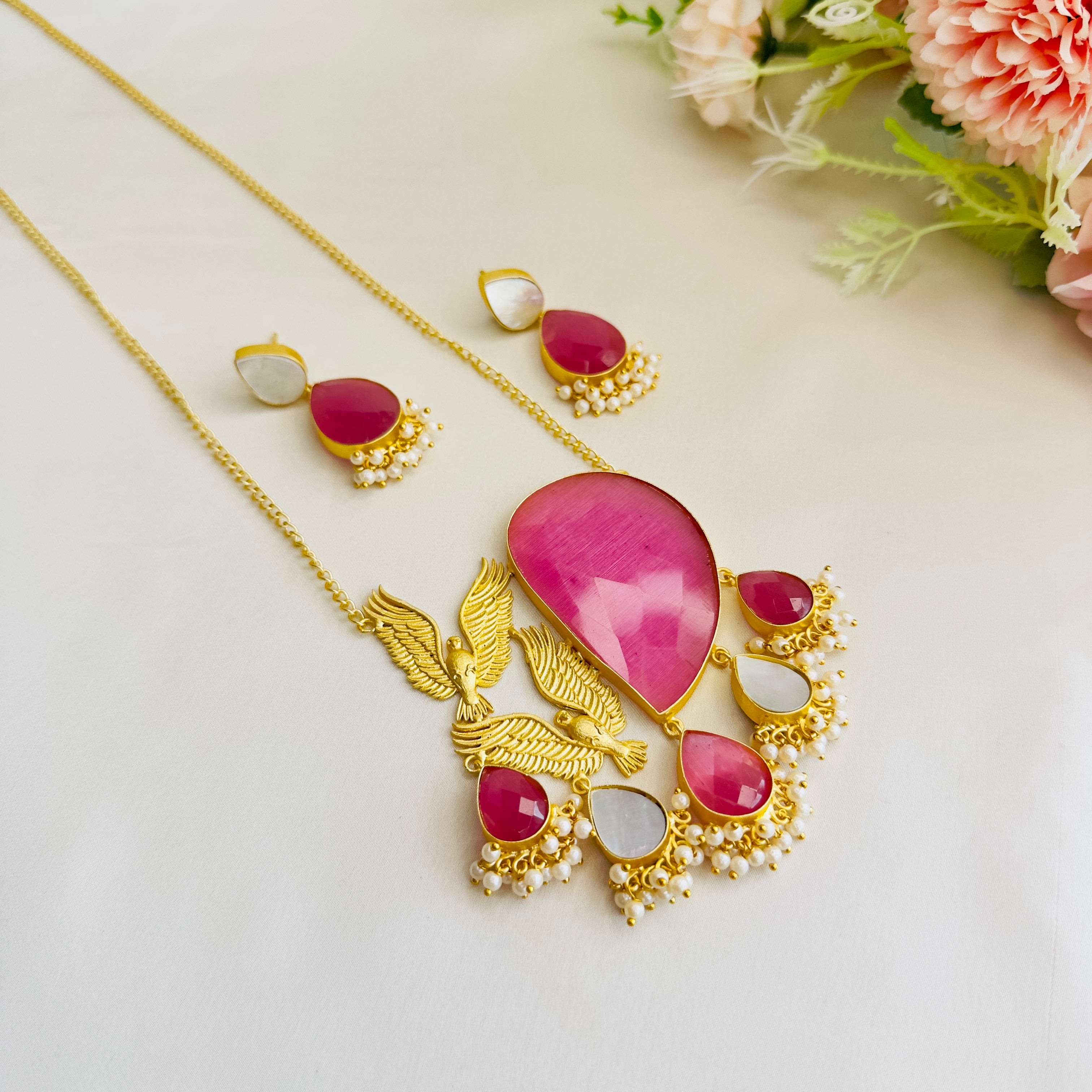 Monalisa Stone Bird Motif Matt gold Finish Necklace Set