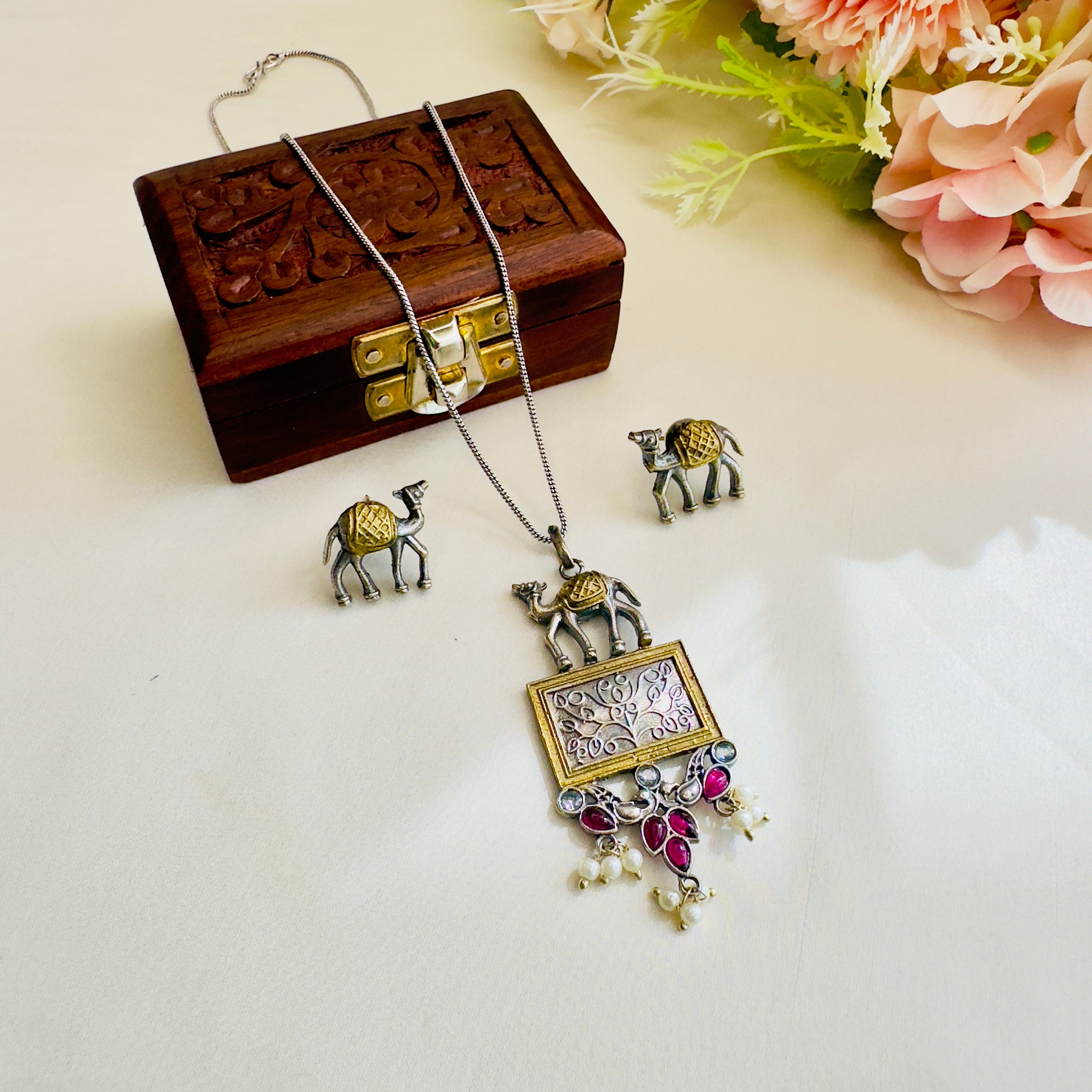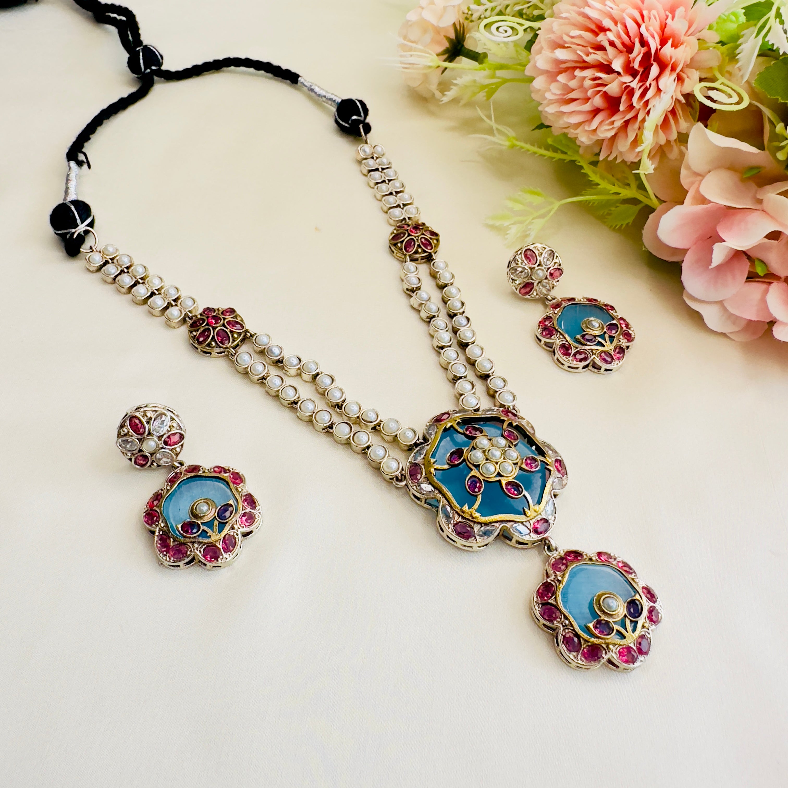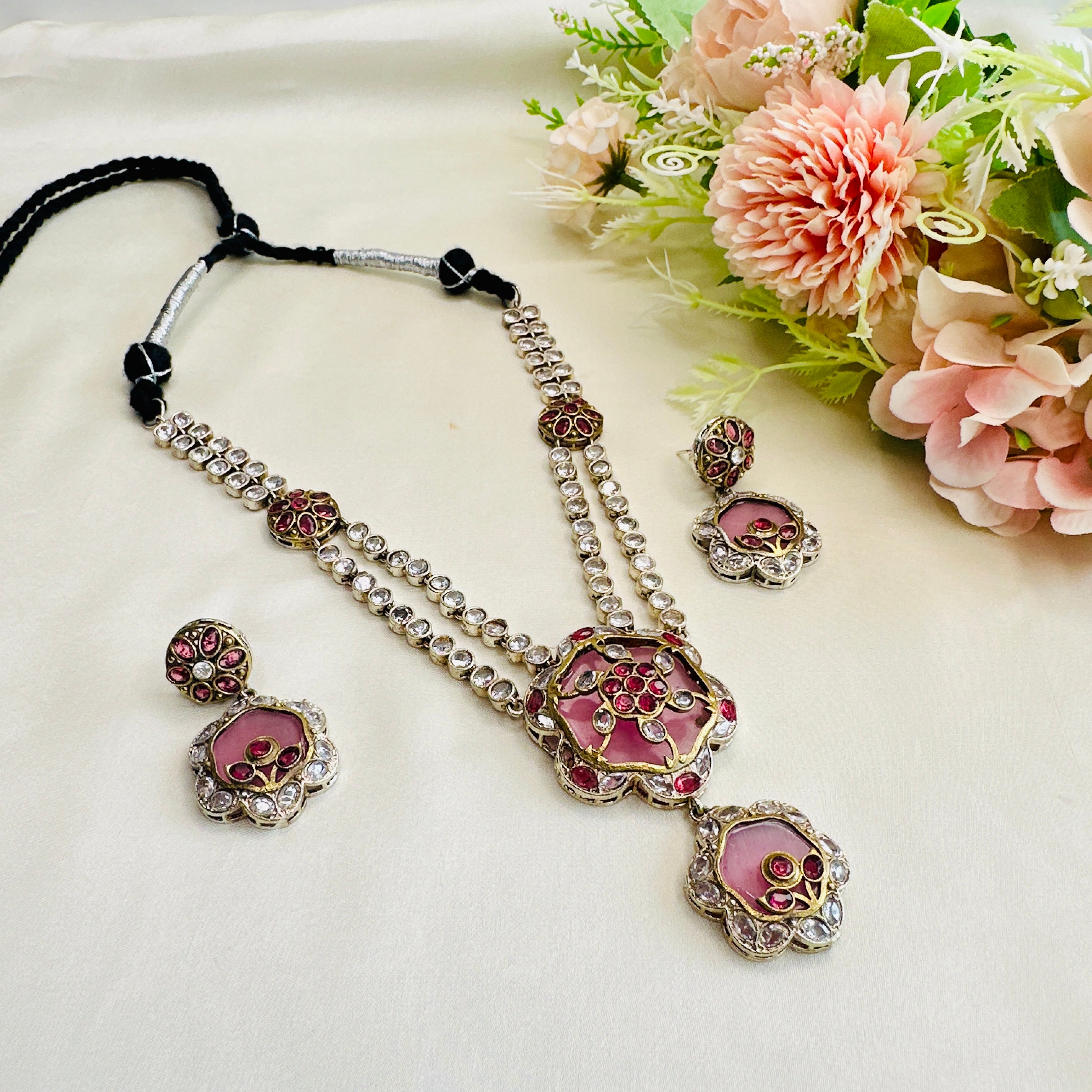 Monalisa Stone Bird Motif Matt gold Finish Necklace Set