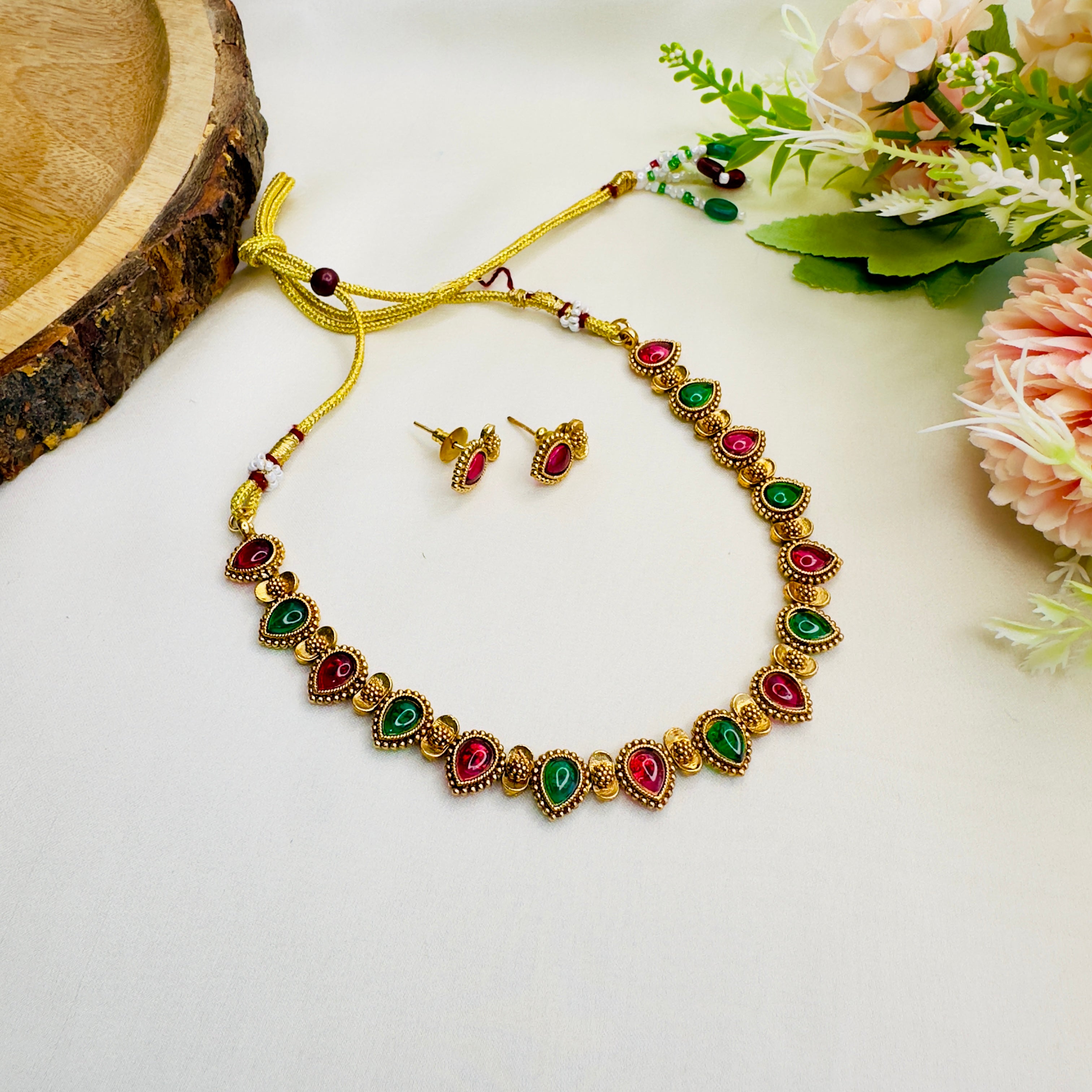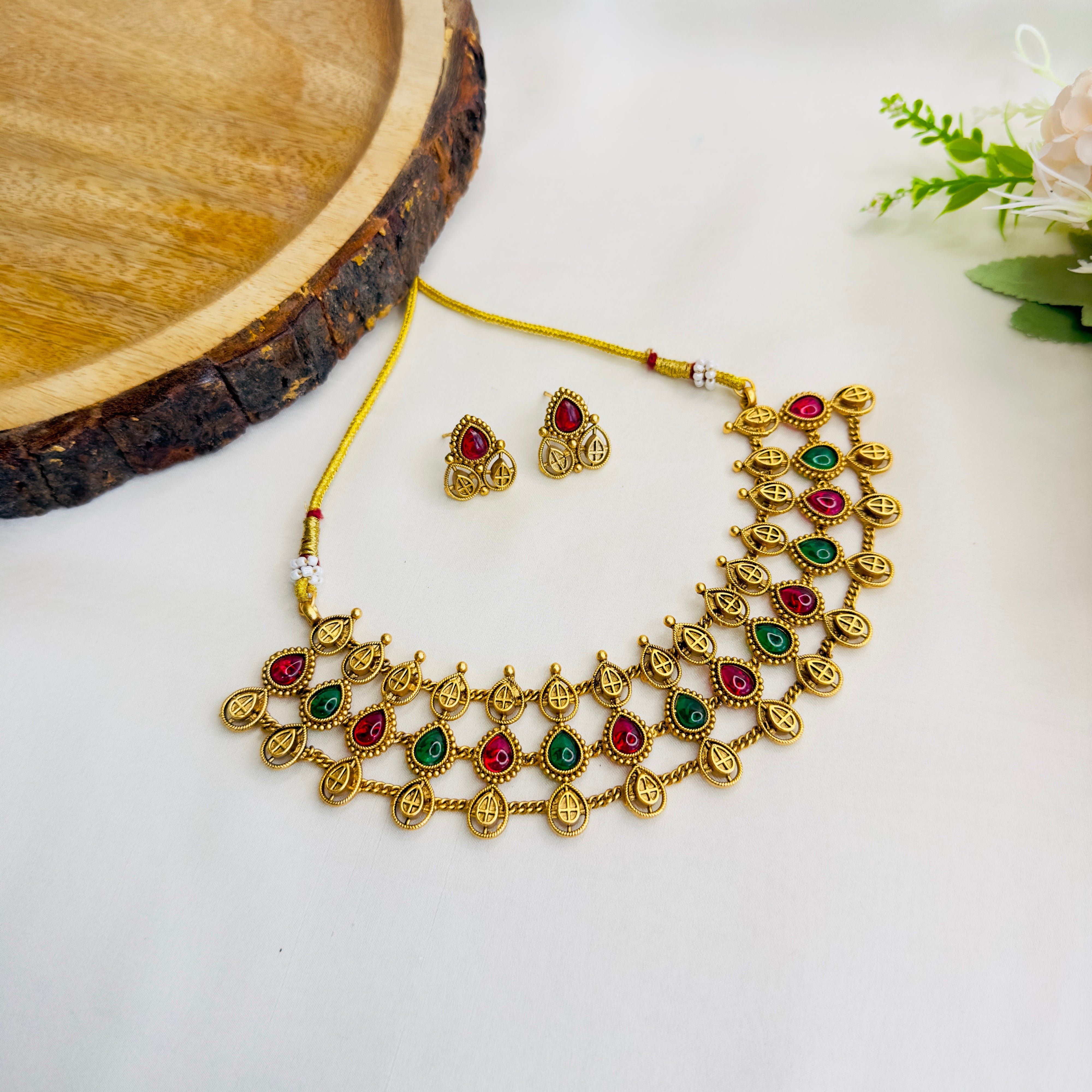 Multicolor Leaf Motif Necklace Set