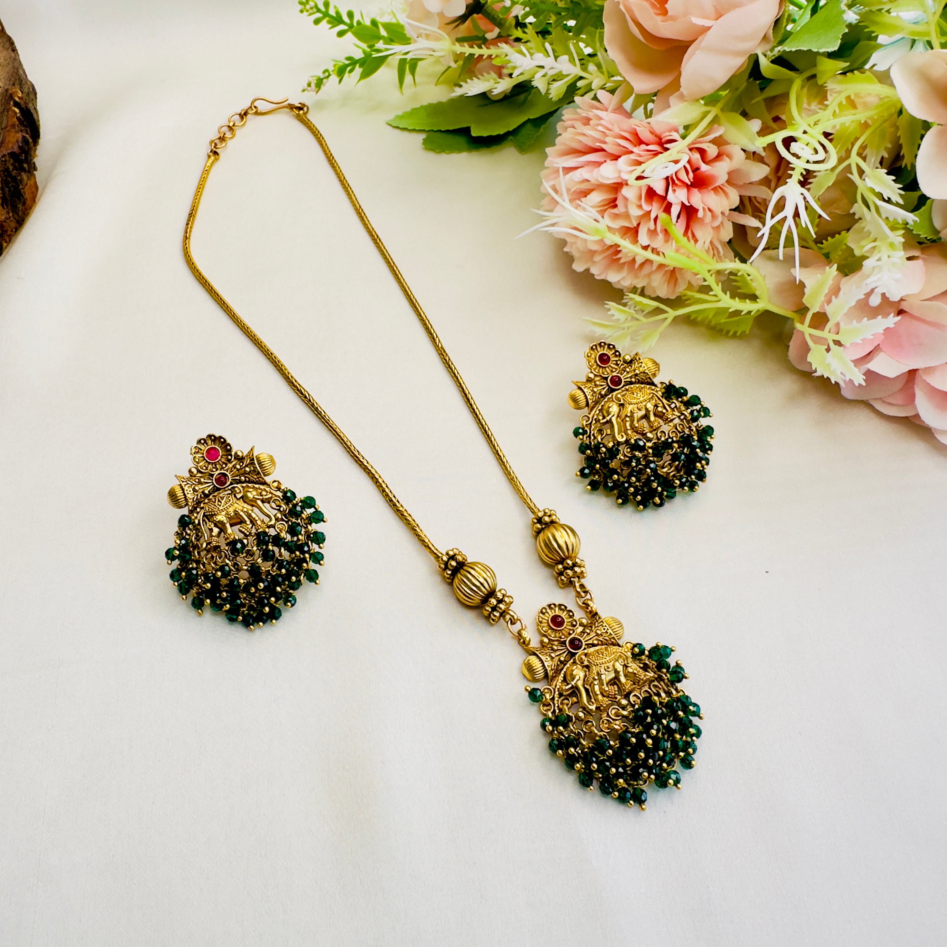 Elephant Motif Green Necklace Set