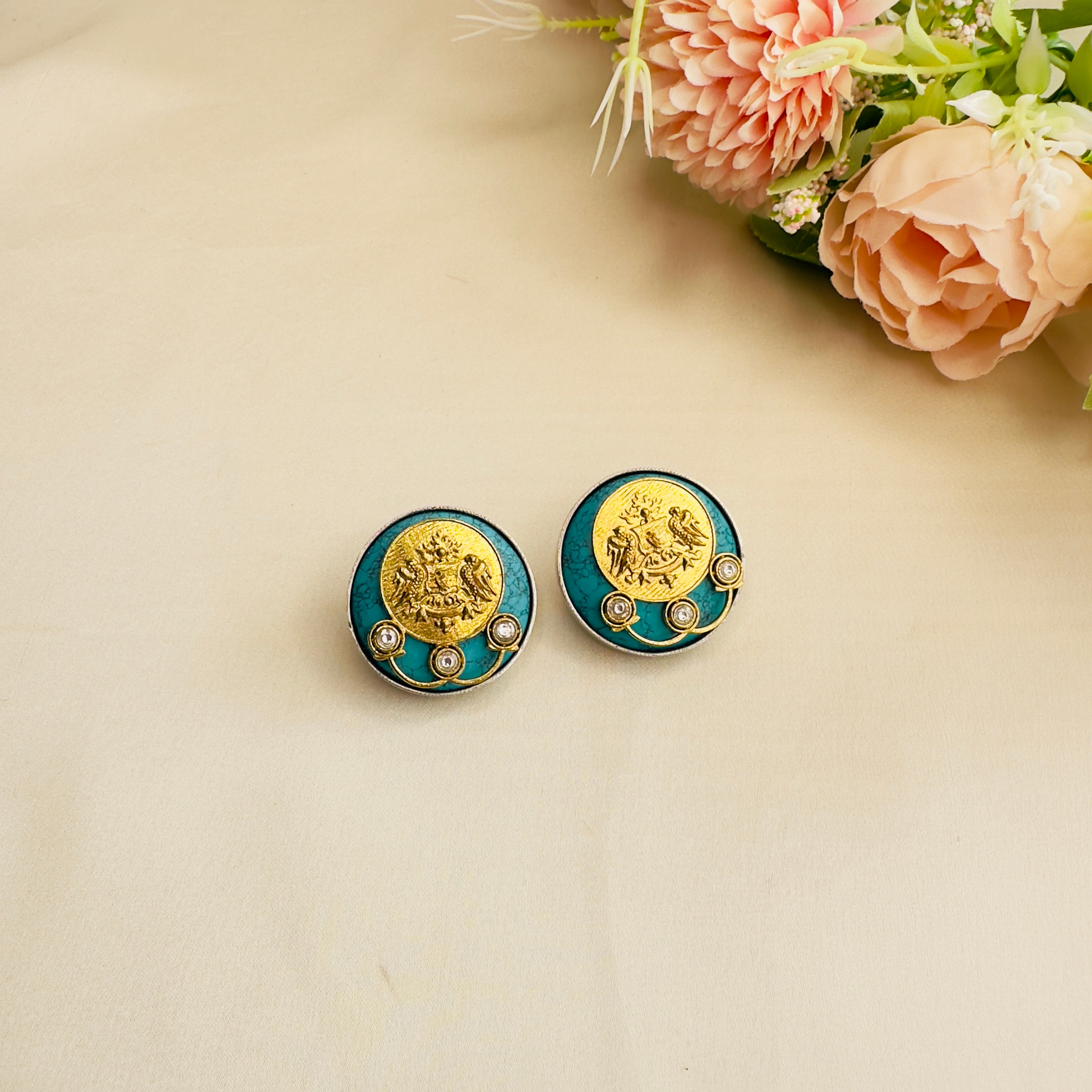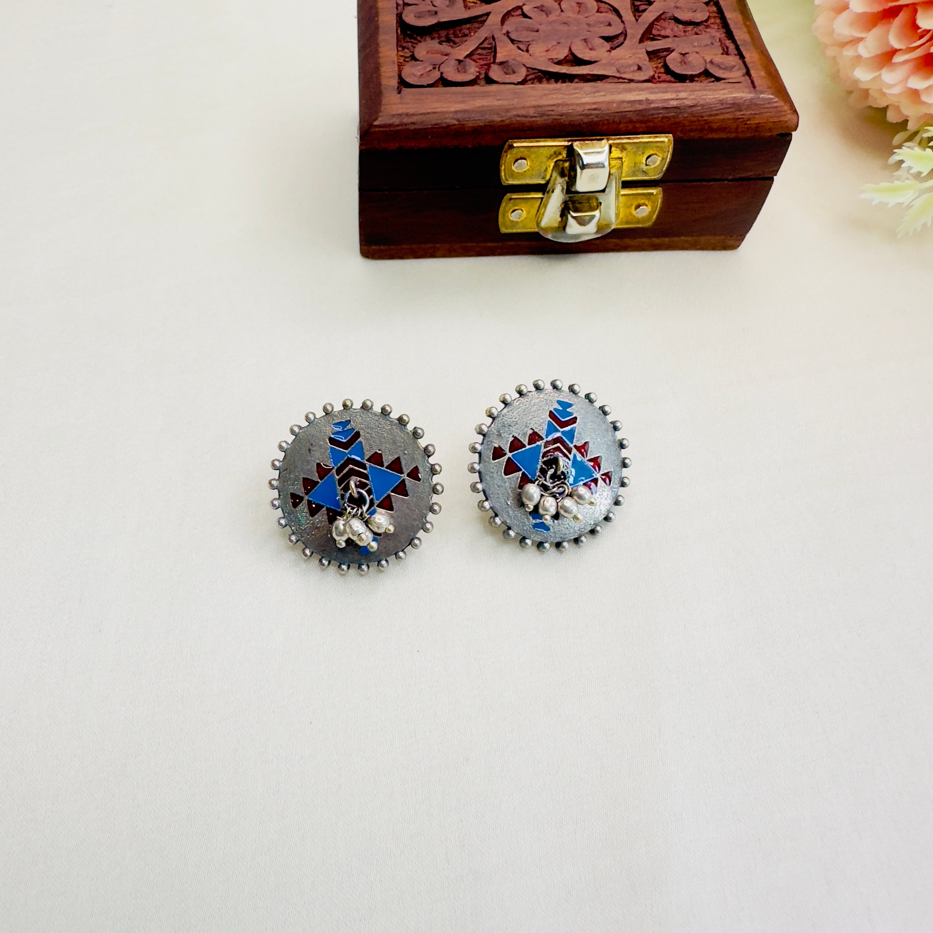Silver Replica Hand painted Stud Earrings