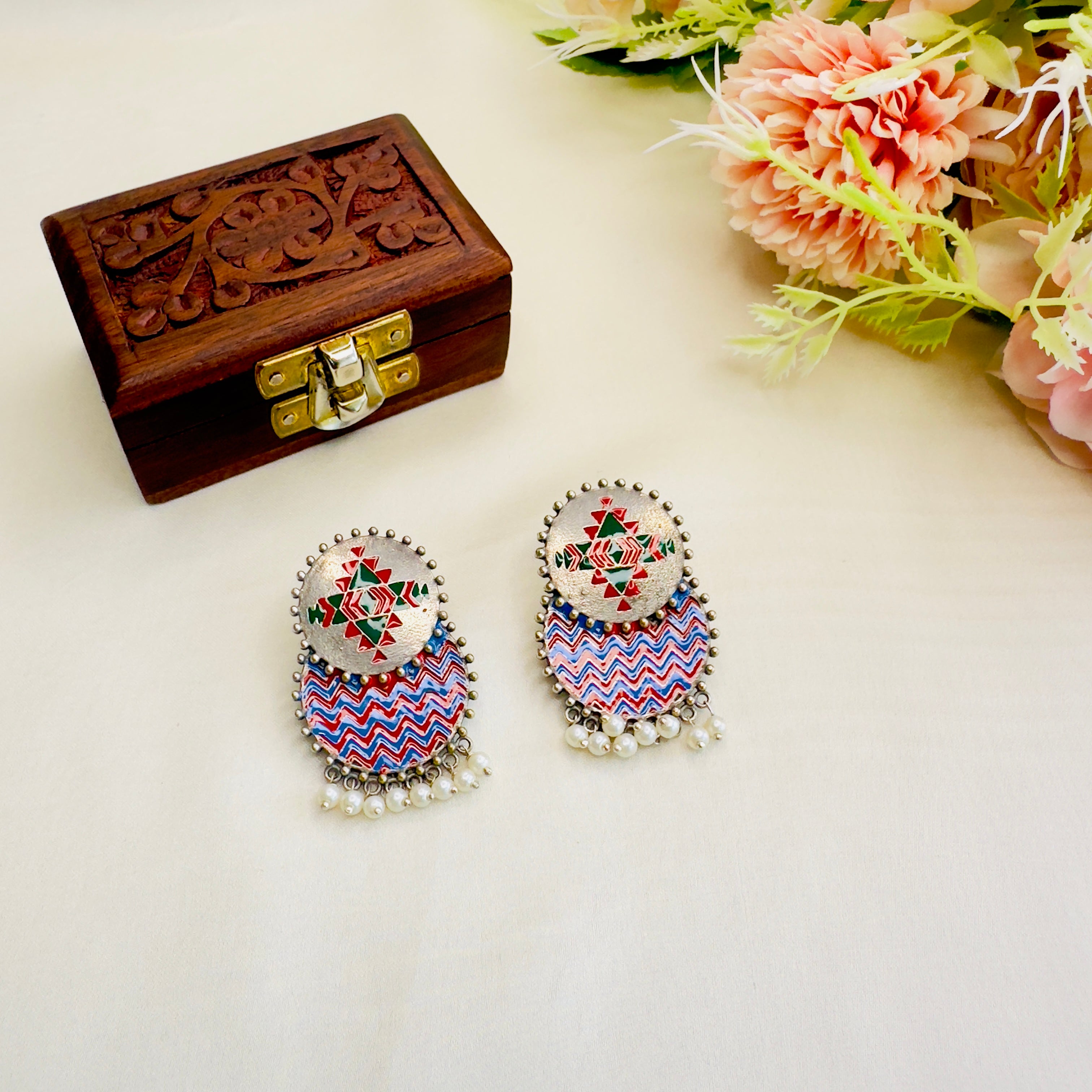 Silver replica Hand painted Earrings