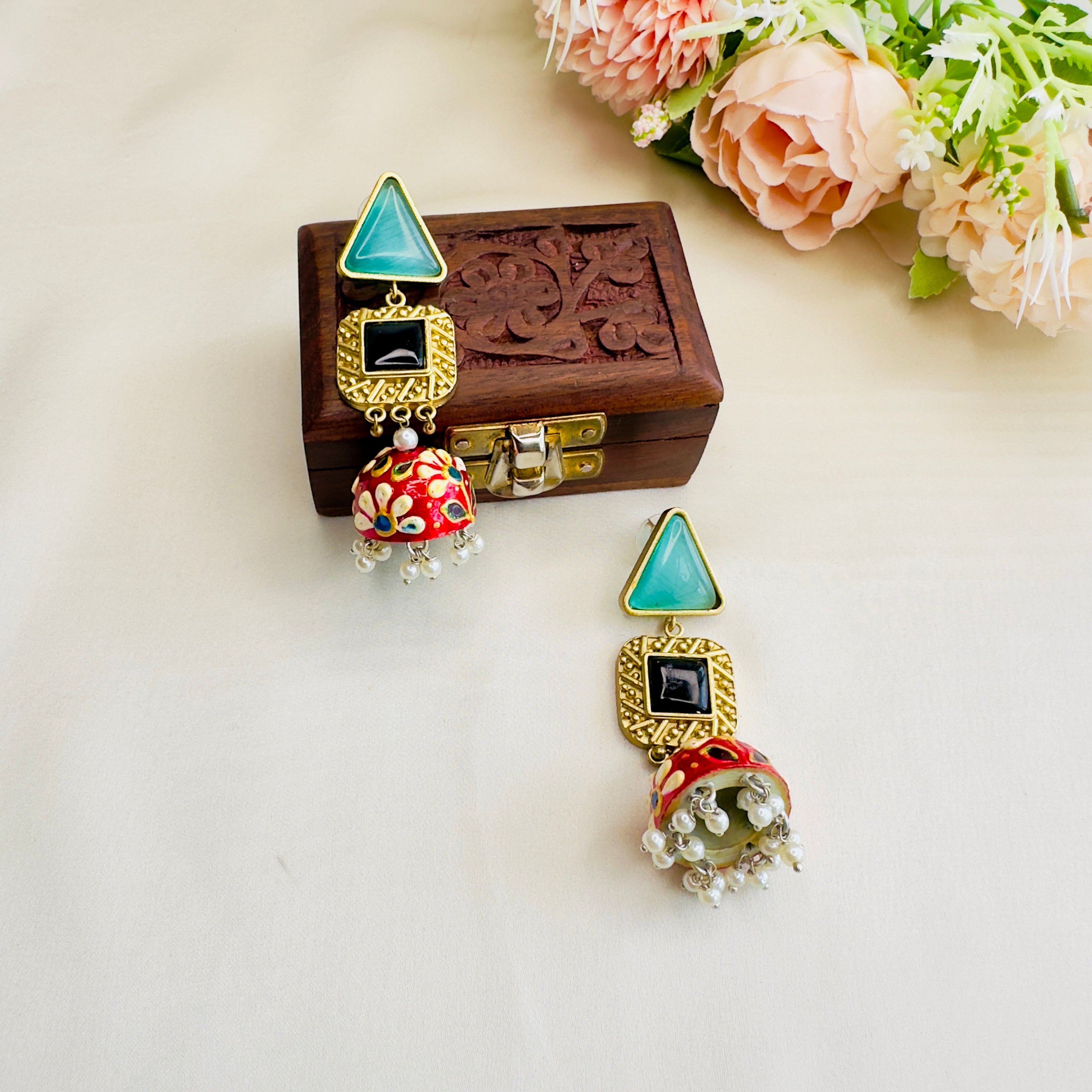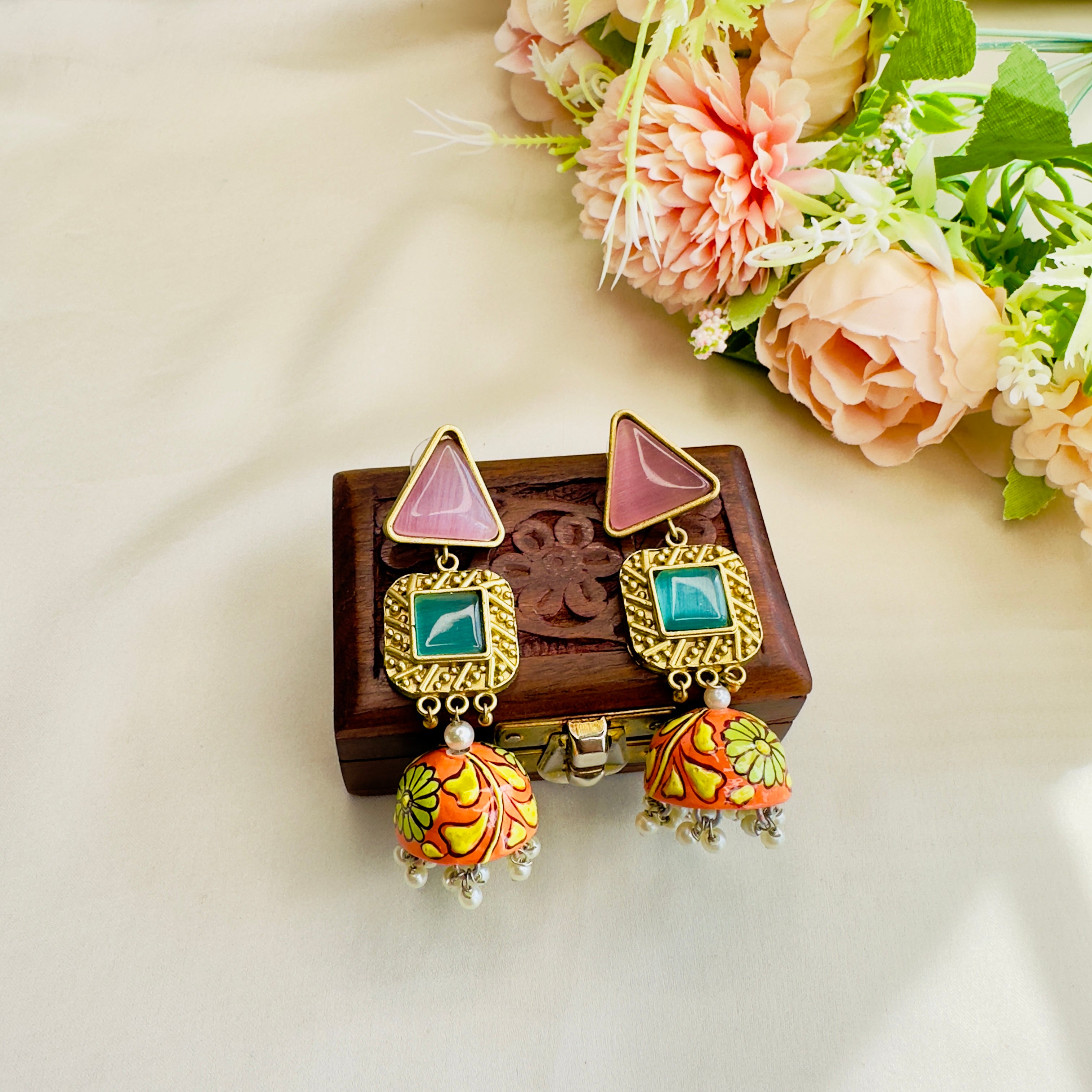 Hand Painted Golden Tone Earrings