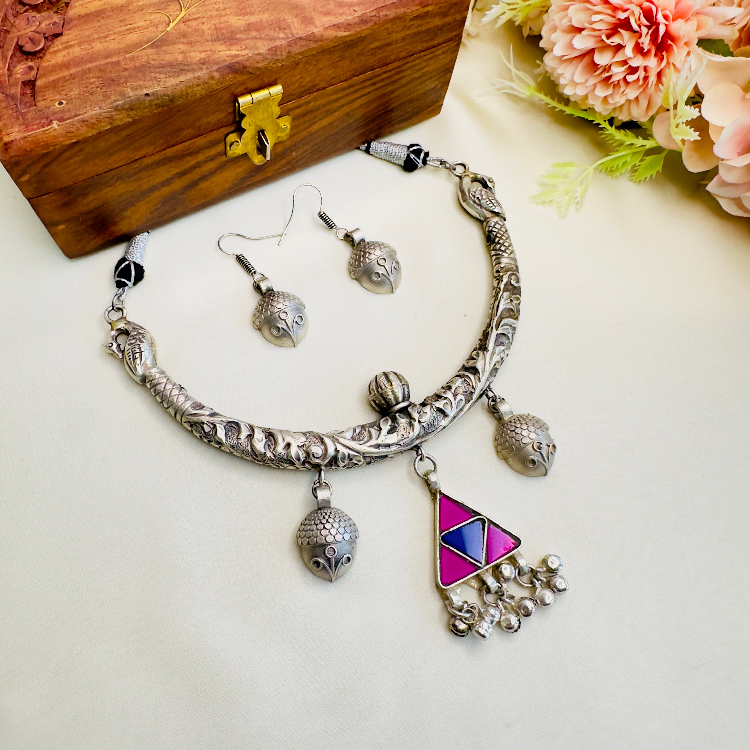 Three Silver Jhumki Necklace set