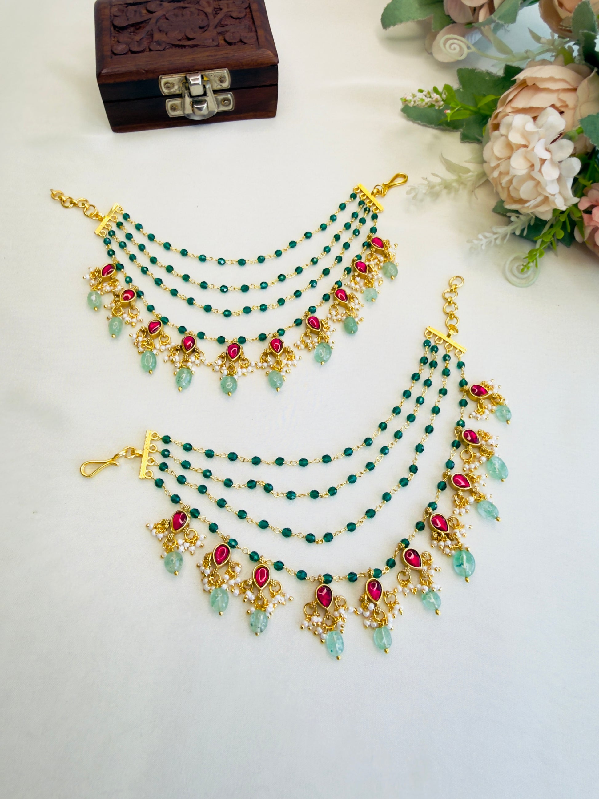 Green Beads Jadau Ear chain