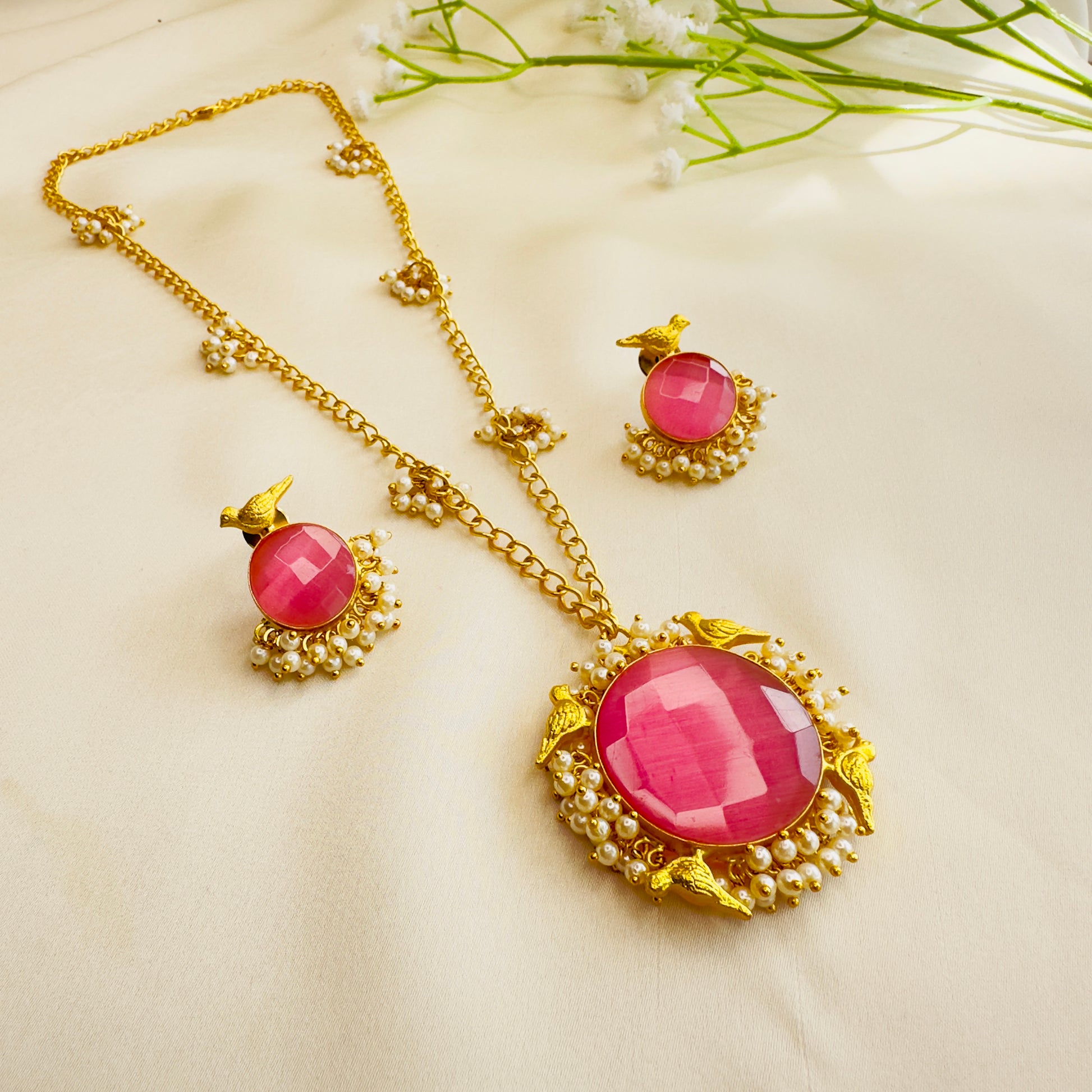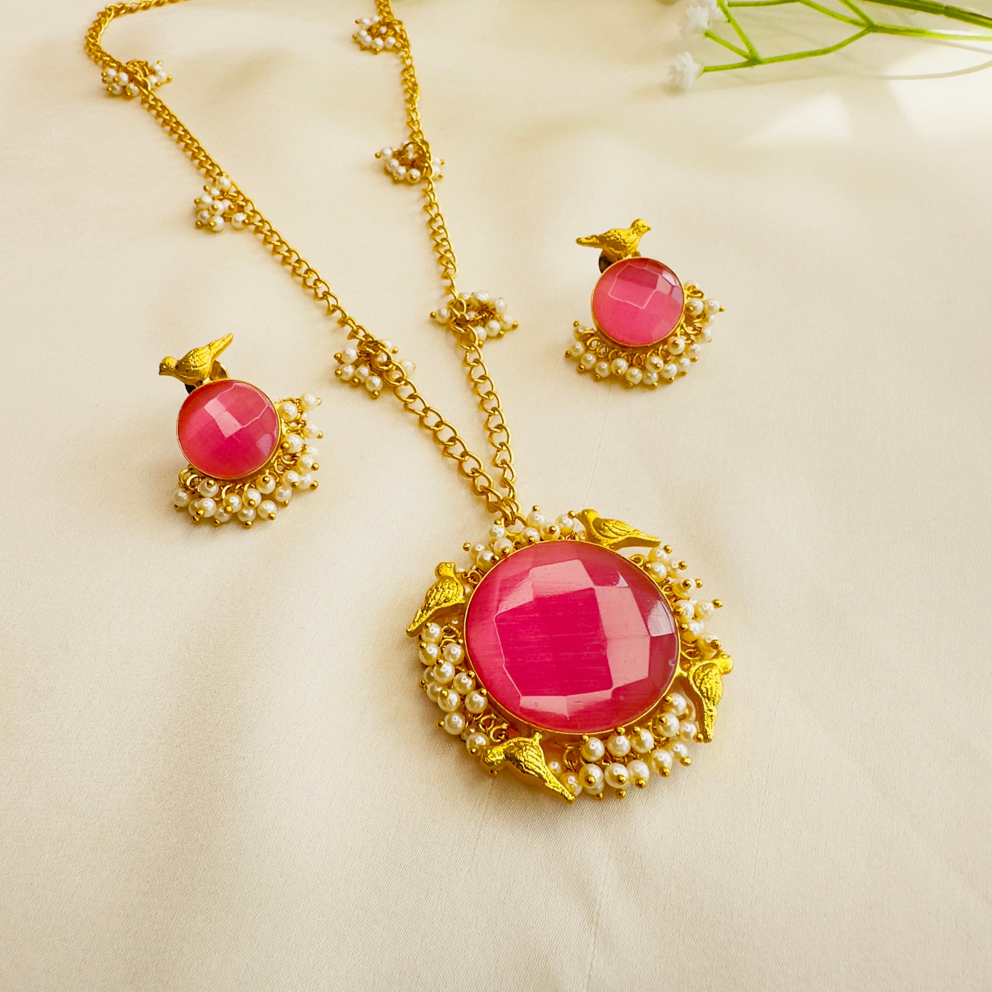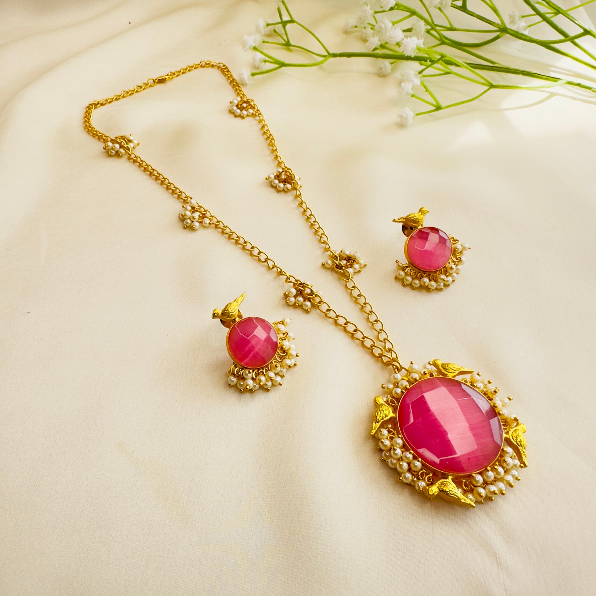 Pearl Work Chain Pendant Set