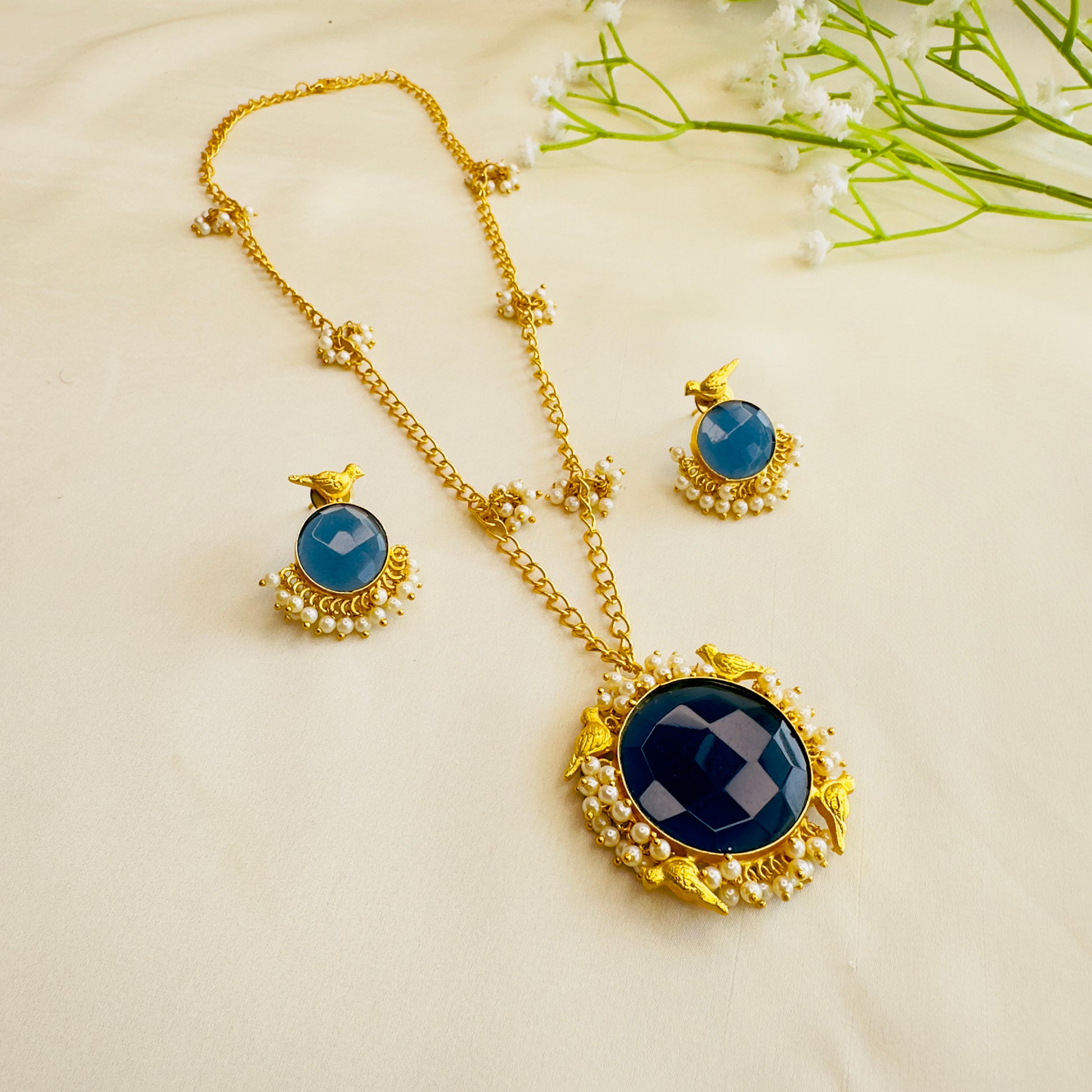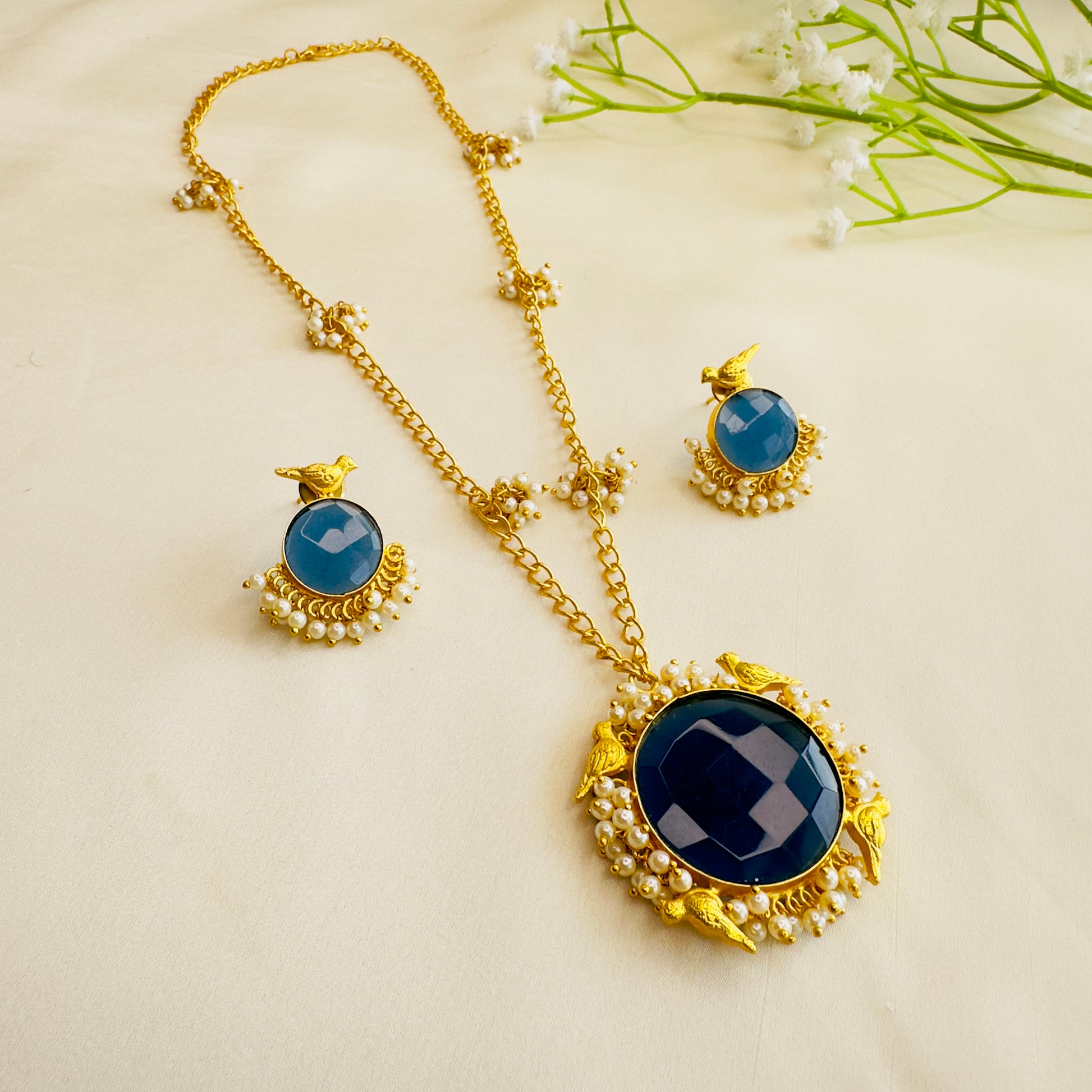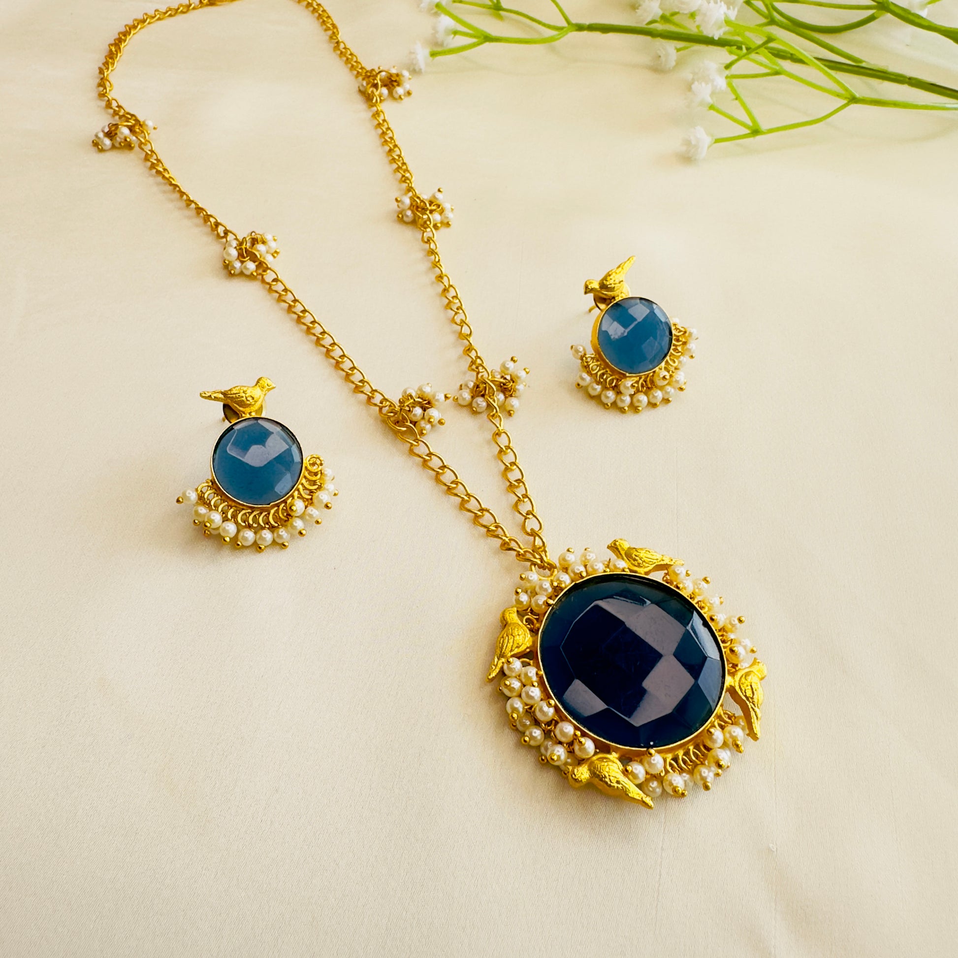 Pearl Work Chain Pendant Set