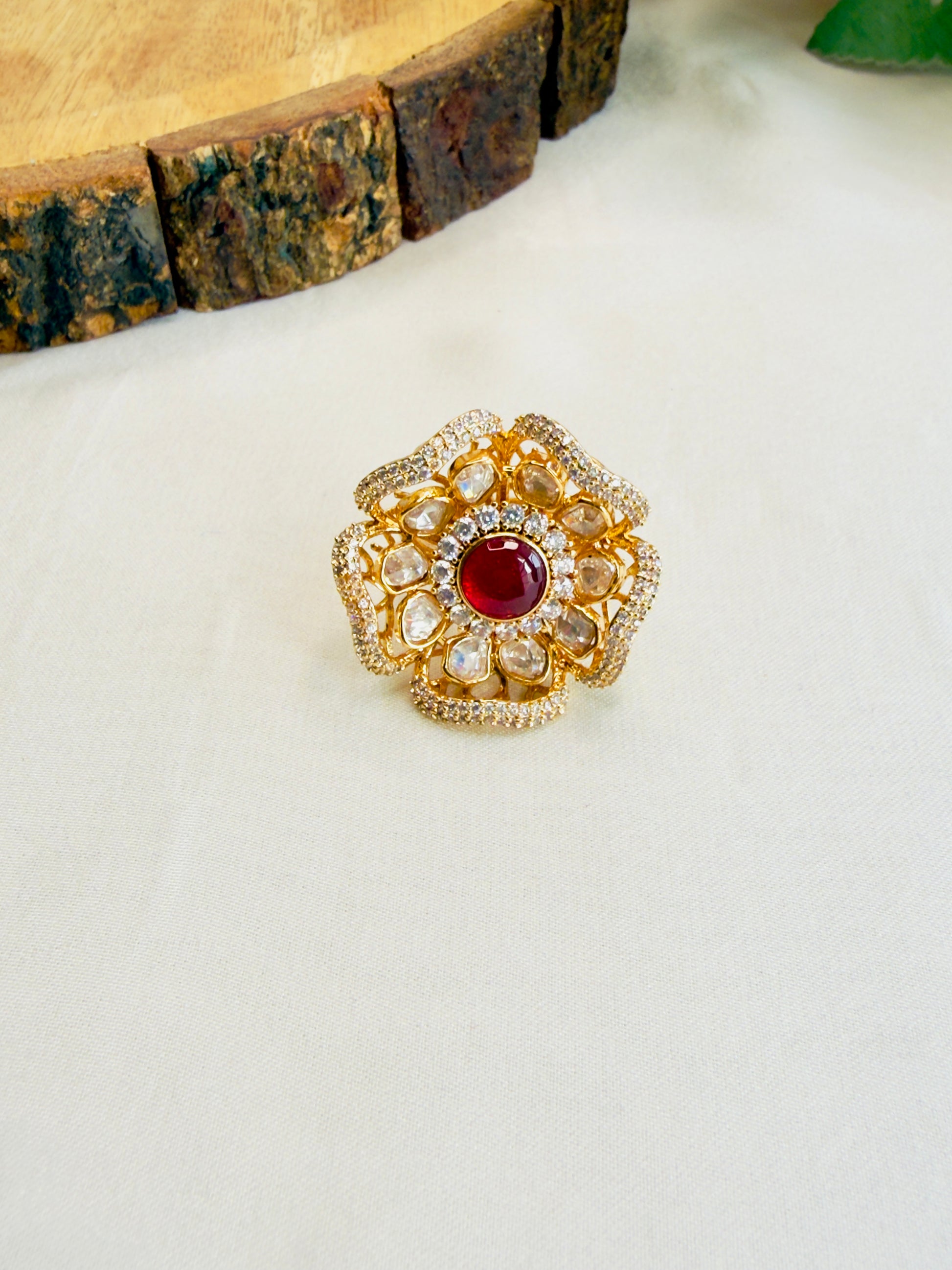 Ruby Moissanite AD Flower Ring