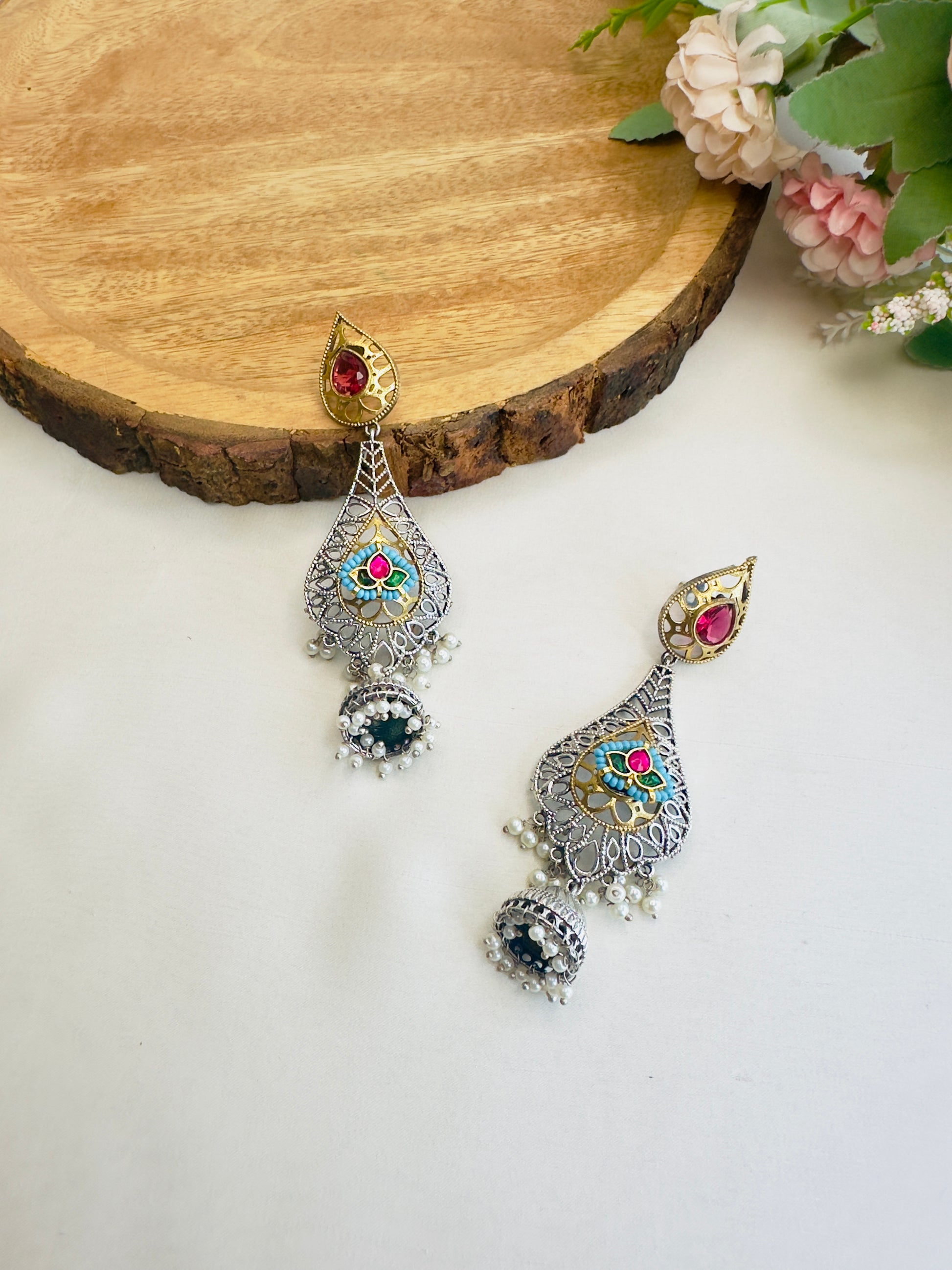 Silver Replica Pachi Kundan Dangler