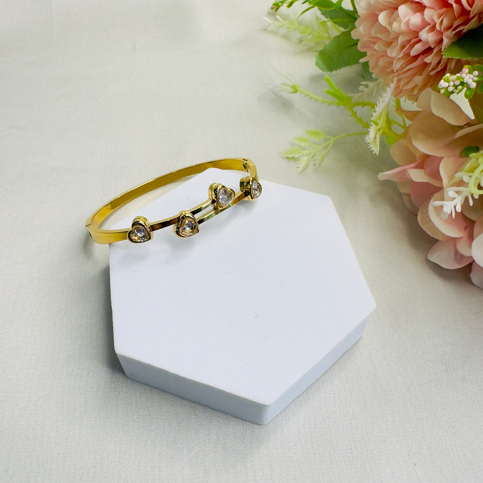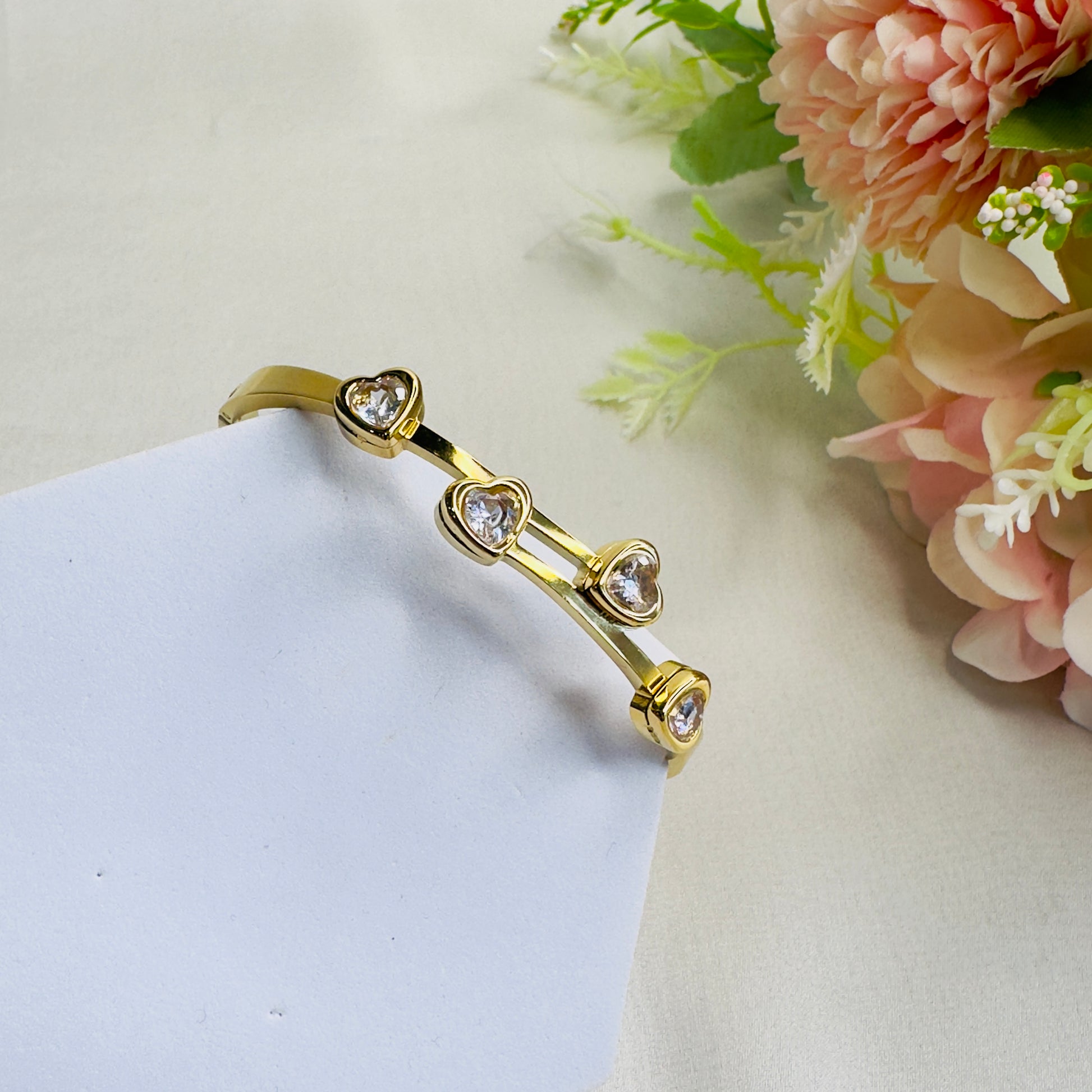 Tarnish Free four Heart stone Bracelet