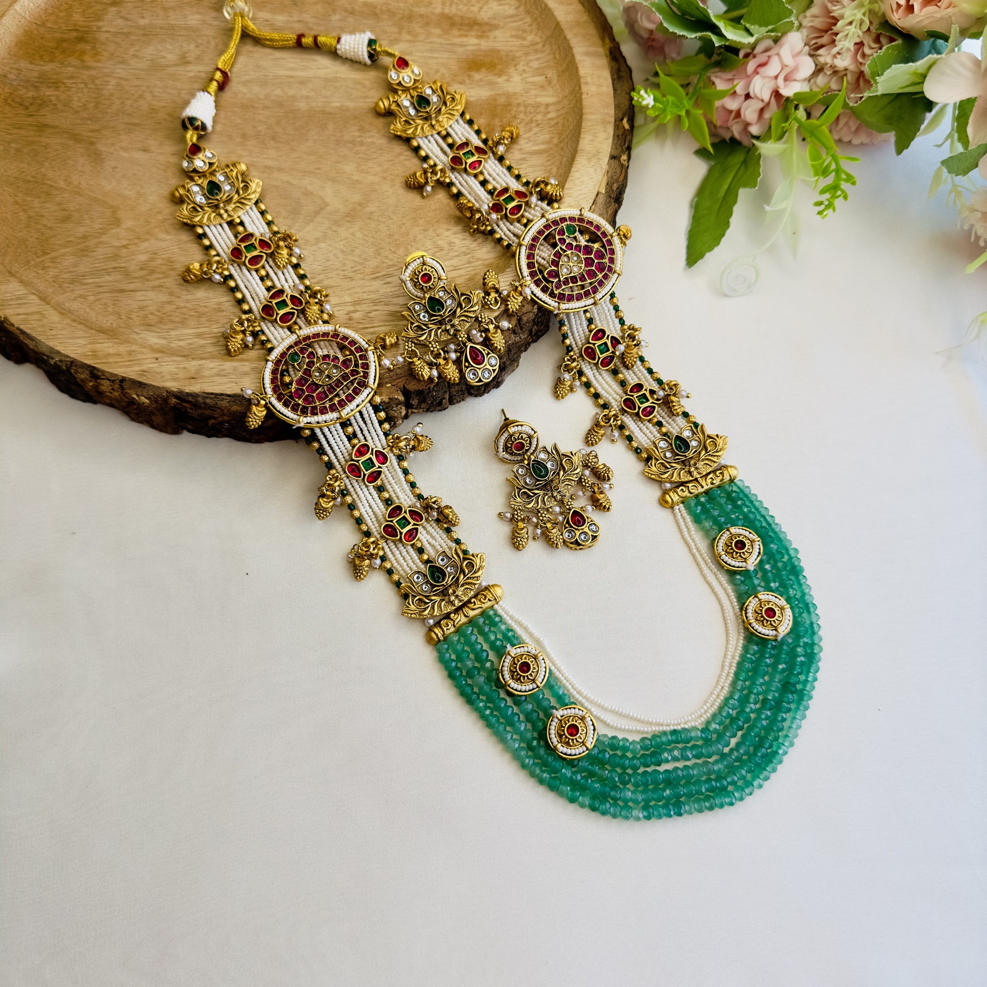 Temple Multilayer Green Necklace Set